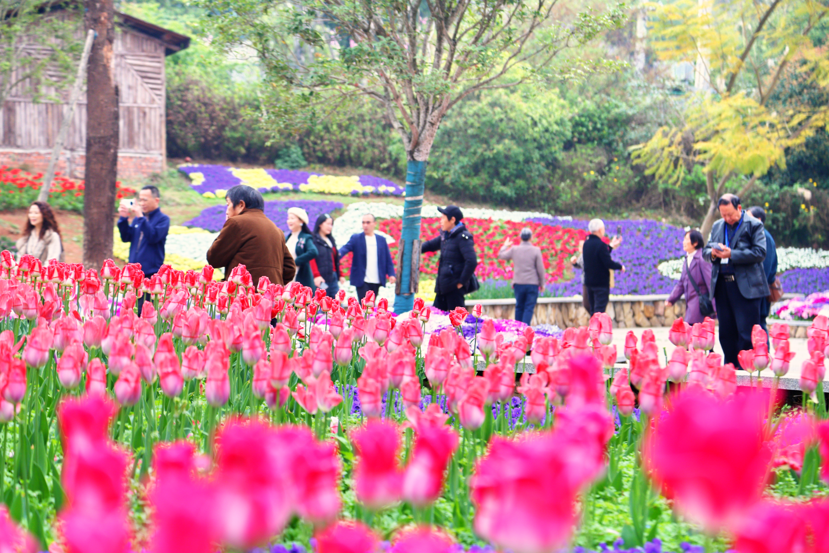 今年的尖山,精彩远不止于“桃花”。景区内全新栽种了各色郁金香10万余株,以及金鱼草、蝴蝶花、报春花、洋牡丹等花卉8万余株,与不远处的烂漫桃林相映成趣,成为游客拍照打卡的新晋网红点位。