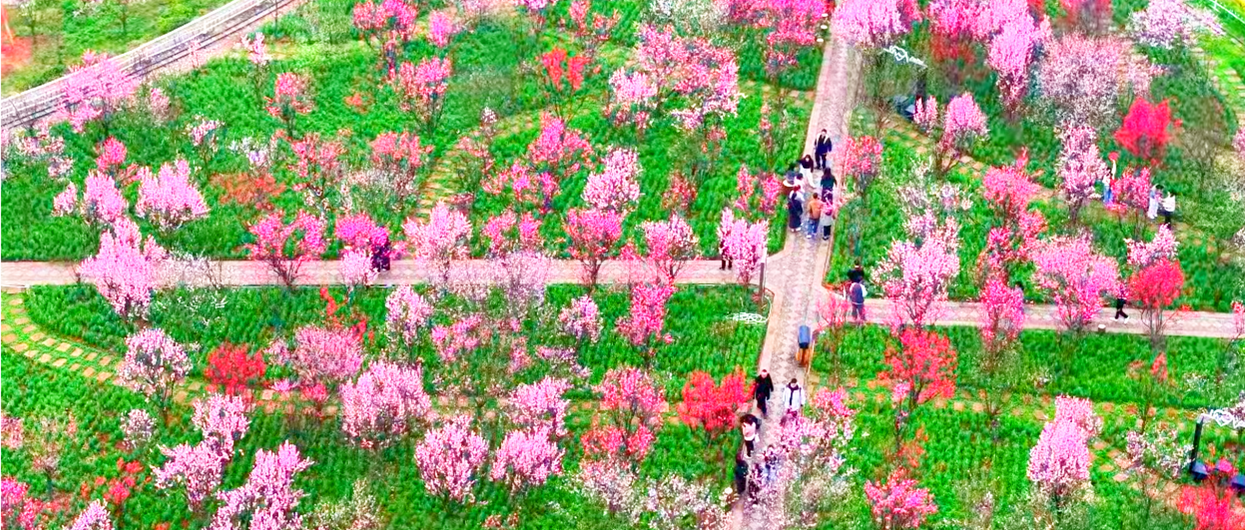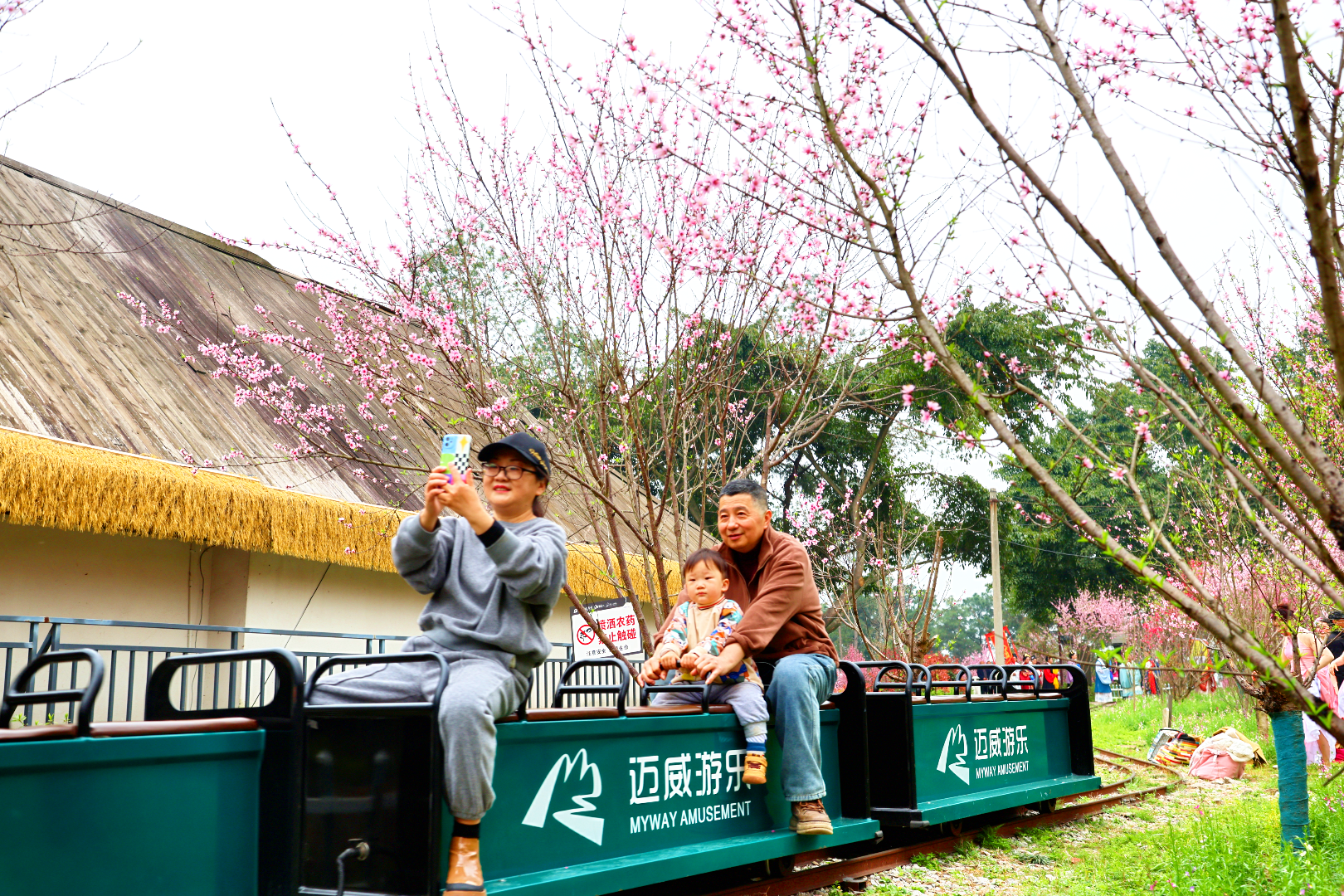 景区内新增惊激极限飞越体验馆,设置9D动感飞行影院,将视觉、听觉、嗅觉、触觉和动感融为一体;“桃源集市美食汇”汇聚特色风味,让游客在花海间品味春日舌尖滋味;文化雅趣:结合汉服、诗书打造文创体验区,在桃林间感受诗意氛围;亲子时光:落地森林寻宝、5D影院等多元业态,开设“萌芽旅行”少儿自然研学课堂,让孩子在自然探索中解码春天;更有植树添绿、徒步赛事等户外活动,让游客在赏桃之余感受春日律动。