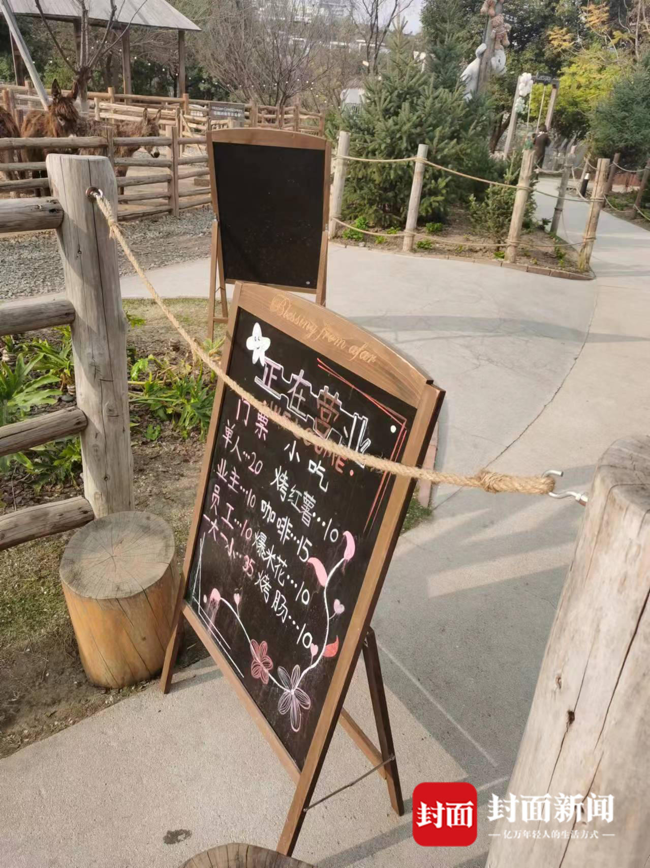 在农场入口,摆放有专门的收费公示牌和售票处,进入农场的门票为单人20元一张,一个大人一个小孩的组合门票为35元,游客还可以购买动物专有食物,给动物喂食和互动。
