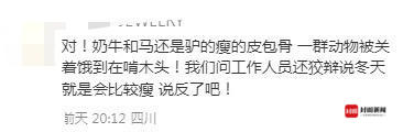 而在现场,记者并没有看到有动物遭受虐待的情形,也并没有看到网友所说的地上啃食木头和瘦脱相的奶牛,虽然有一定的异味,但有游客告诉记者,这些都是正常的动物身上的味道,在其他家禽身上都有,“家里如果养过猪、鸡鸭的都会清楚,类似味道都很正常的。”