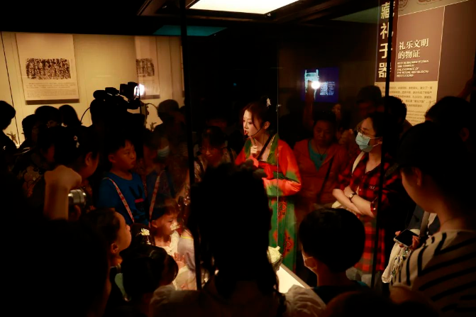 为了让观众沉浸式感受博物馆夜游魅力,河南博物院采取“展览+特色活动”方式,不仅精心挑选了与端午节相关的三个展厅进行开放,还开展了“华服来潮”换装秀、华夏古乐端午诗乐会、“饕饕食集”等多彩项目,以及宋代点茶、端午香道等深度体验。