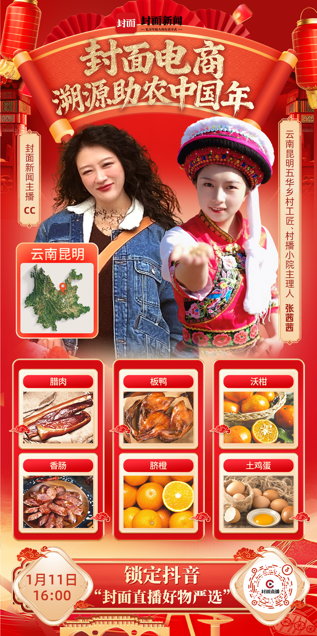 一场关于寻觅年味、感知匠心的体验,千万不要错过!封面新闻主播CC与云南昆明五华乡村工匠、村播小院主理人张茜茜将带您了解产品背后的故事,严选品质,让您安心置办年货,省心又省力。