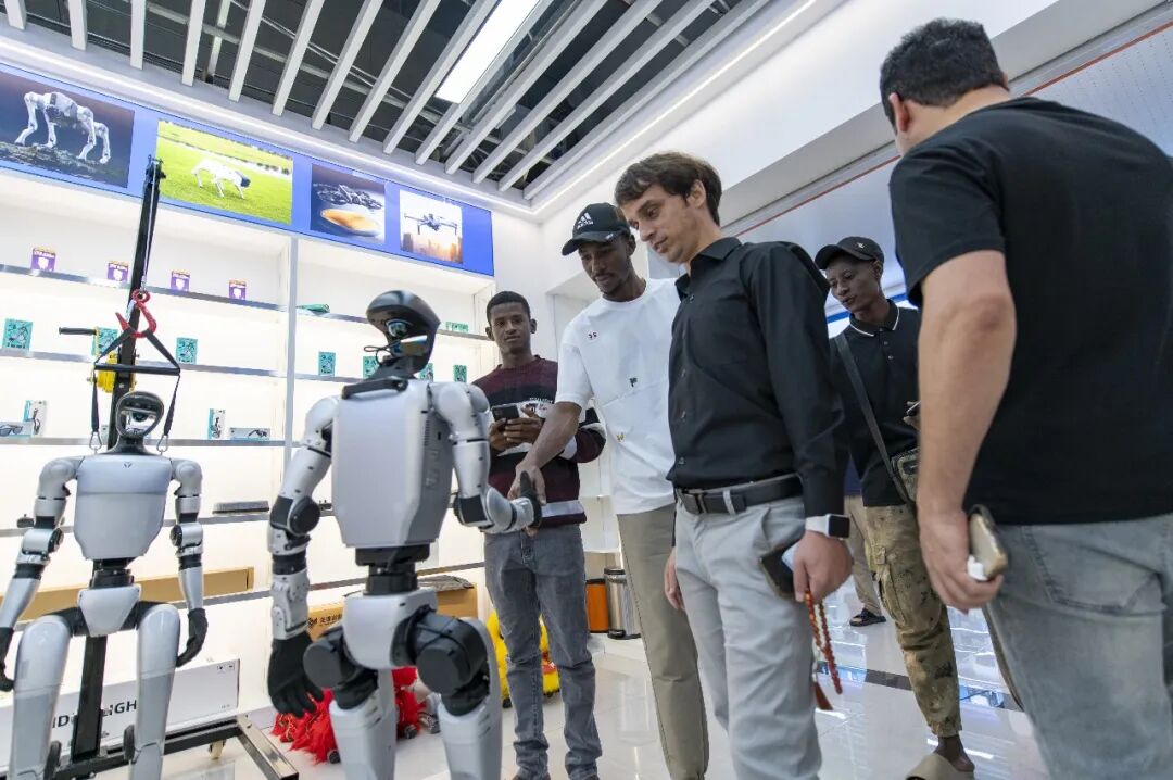 外籍客商在义乌全球数贸中心与机器人互动 图源:新华社