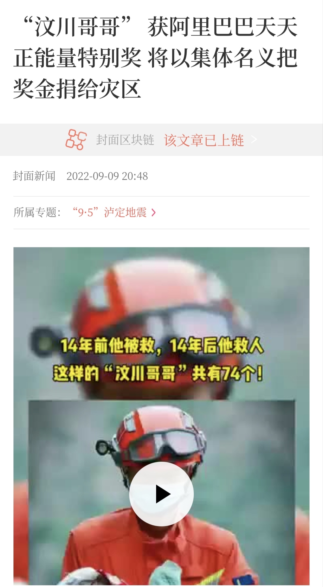 十年来,项目共挖掘并传播了11570个凡人善举故事,其中华西都市报·封面新闻获评全国十大获奖案例数量最多的媒体,共报道近200个正能量典型案例,通过发掘、表彰、传播社会上的凡人善举,和数以亿计的网友一起共建“善”的舆论场。