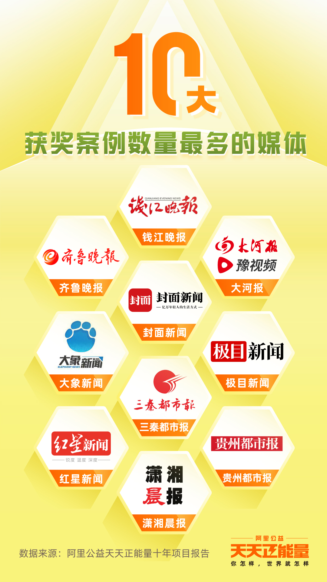 据了解,在过去十年里,“天天正能量”这个开放公益平台上已汇集起全国近400家媒体,《“天天正能量”项目十年评估报告》显示,项目采用的互联网+媒体的独特“媒体公益”模式,成为见证时代公益精神发展的重要窗口。