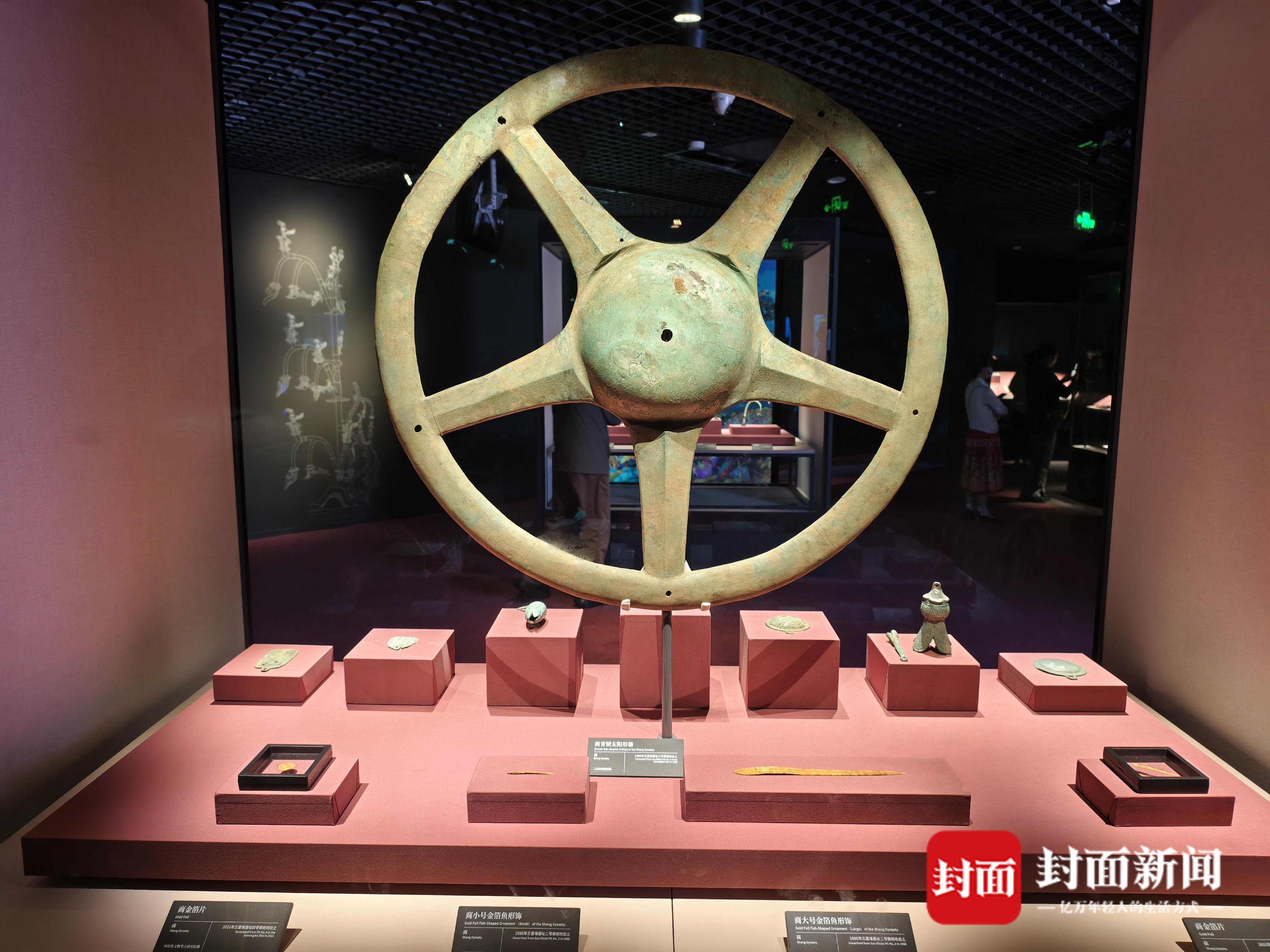 展览上拍摄的商青铜太阳形器。