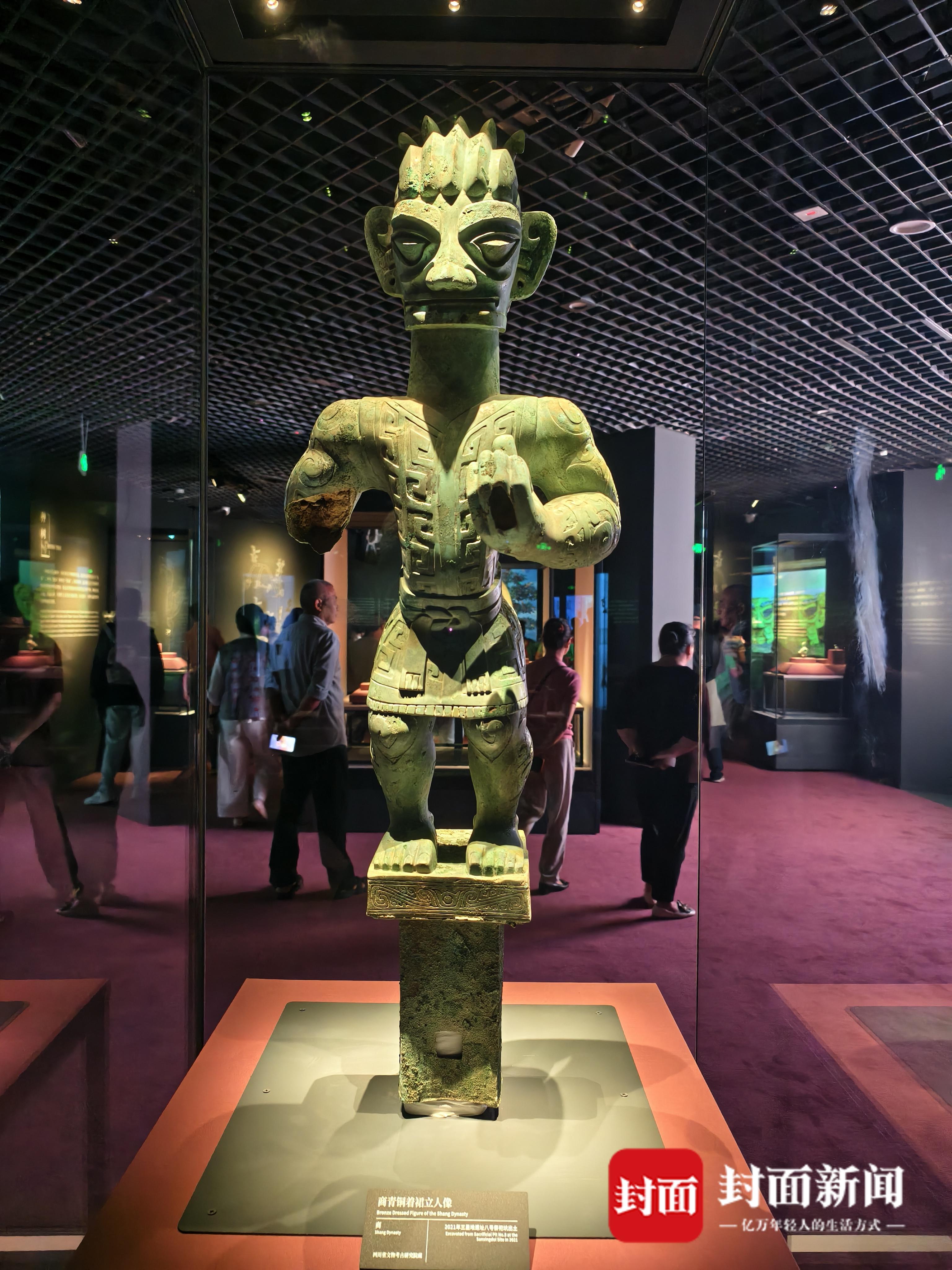 展览上拍摄的商青铜着裙立人像。