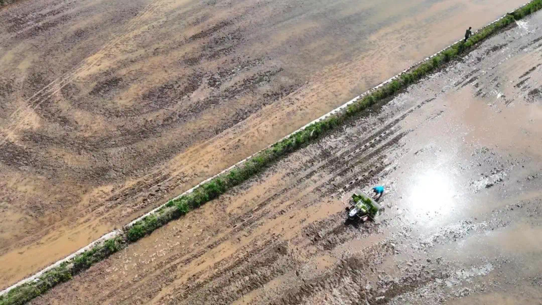 在公民镇五良融合核心区,来自公民镇联村带民农业发展有限公司的农机手,驾驶着插秧机在稻田里来回穿梭。机器行过,一株株秧苗被整齐均匀地插种在水田中。