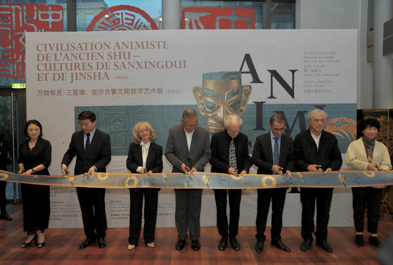 2023年4月13日晚,“万物有灵·三星堆和金沙古蜀文明数字艺术展全球巡展”在巴黎中国文化中心开幕。法国艺术家沙龙主席玛蒂娜·德拉勒芙,法国文化部荣誉戏剧总监让-皮埃尔·余尔斯,法国前美术家协会主席、法国造型艺术协会主席雷米·阿龙等百余位法方政府官员、学者、文化界人士,以及巴黎中国文化中心主任刘红革、中国驻法国大使馆文化处参赞严振全出席启动仪式。