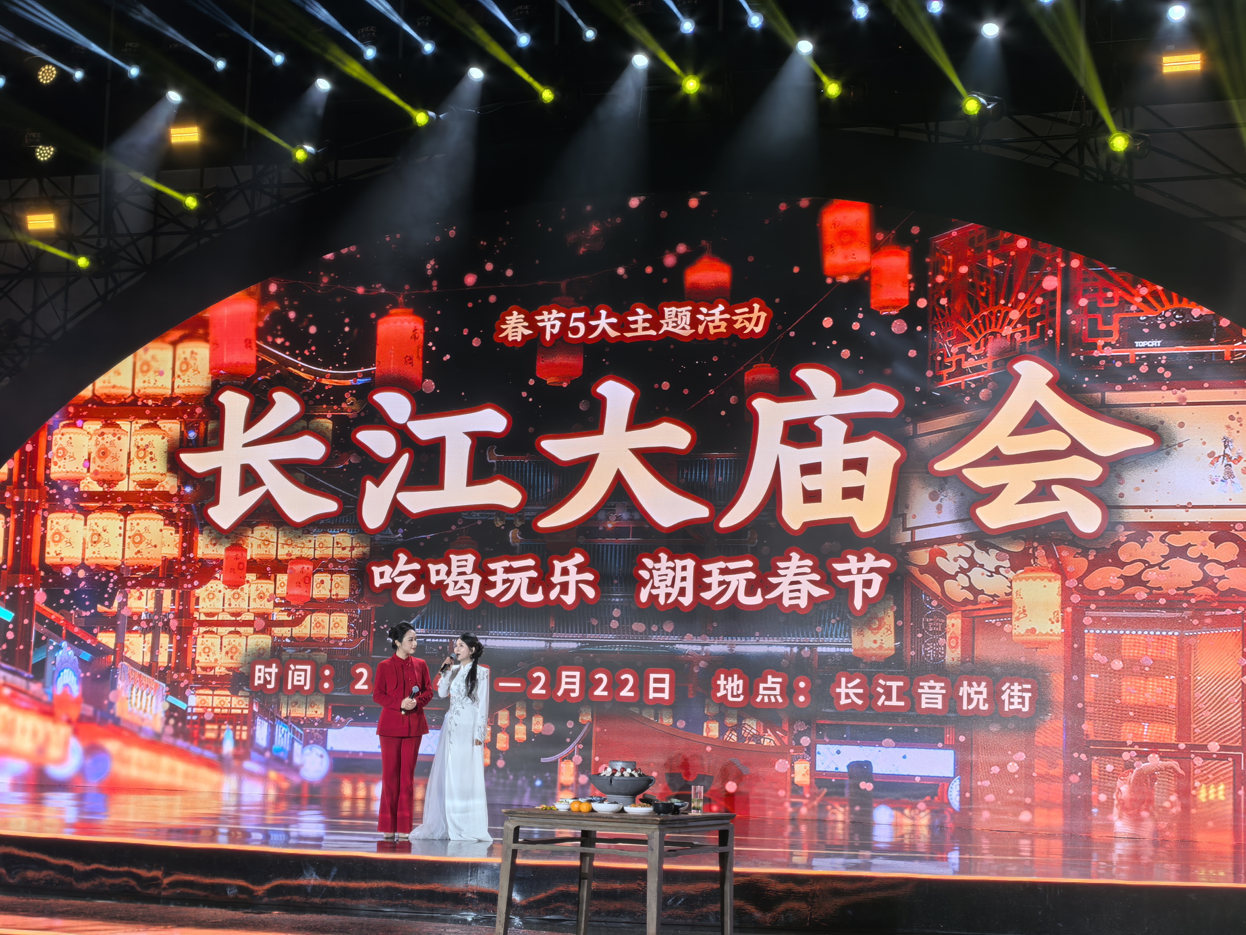 “长江大庙会”主题活动是2月14日至2月22日,在央视秋晚打卡地,设置美食集市、专题音乐会、群众文化活动展演、趣味赛事互动等活动,一站式解锁“吃喝玩乐”。2月16日晚将实时转播总台春晚,举行万人看春晚、共同倒计时的活动。