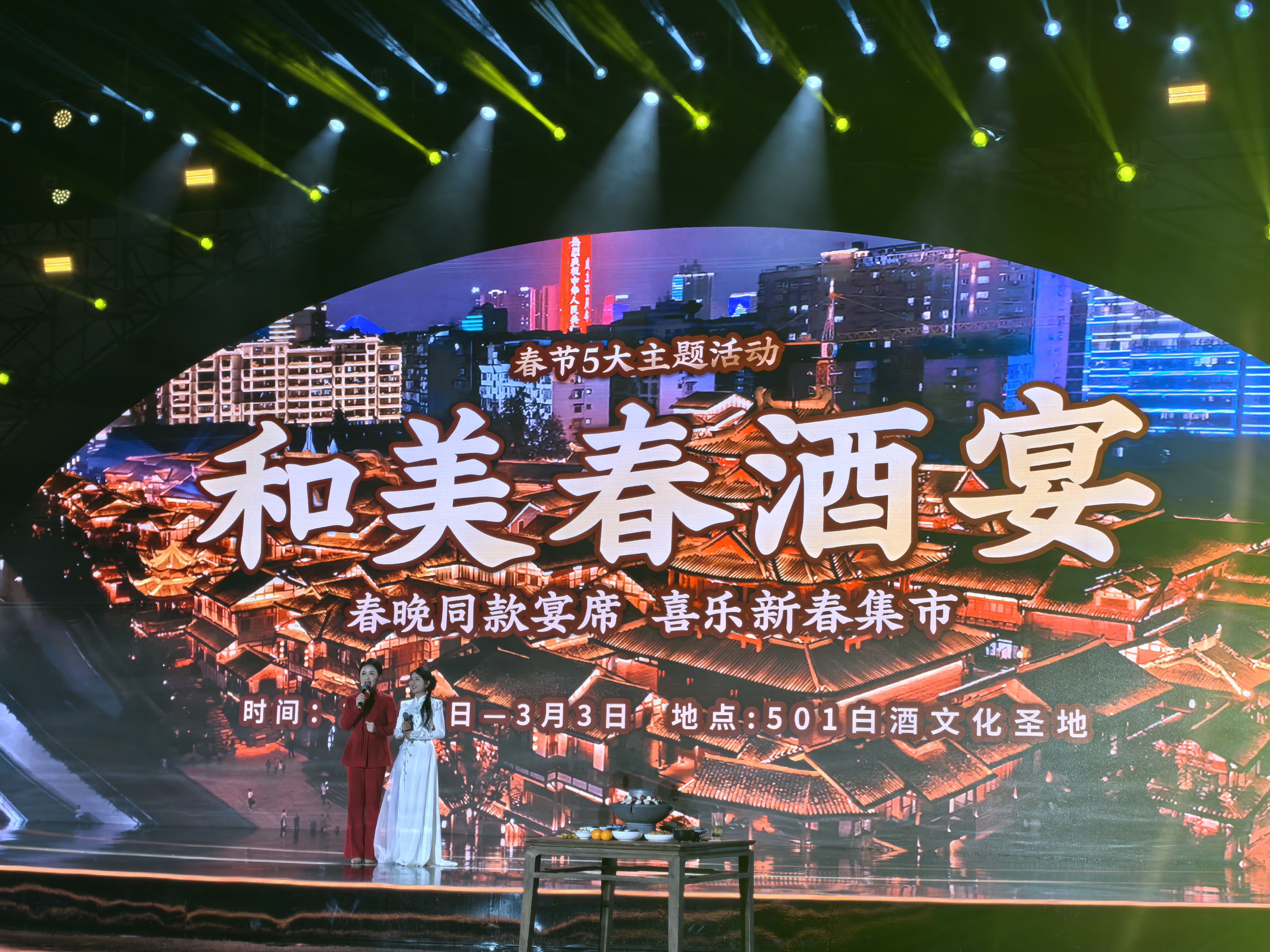 “和美春酒宴”主题活动是2月17日至3月3日期间,在五粮液501古窖池中国白酒文化圣地打造春晚同款“川南请春酒”宴席和“宜宾好市”新春集市,现场品鉴非遗美食、体验非遗技艺及民俗表演,感受宜宾年味。