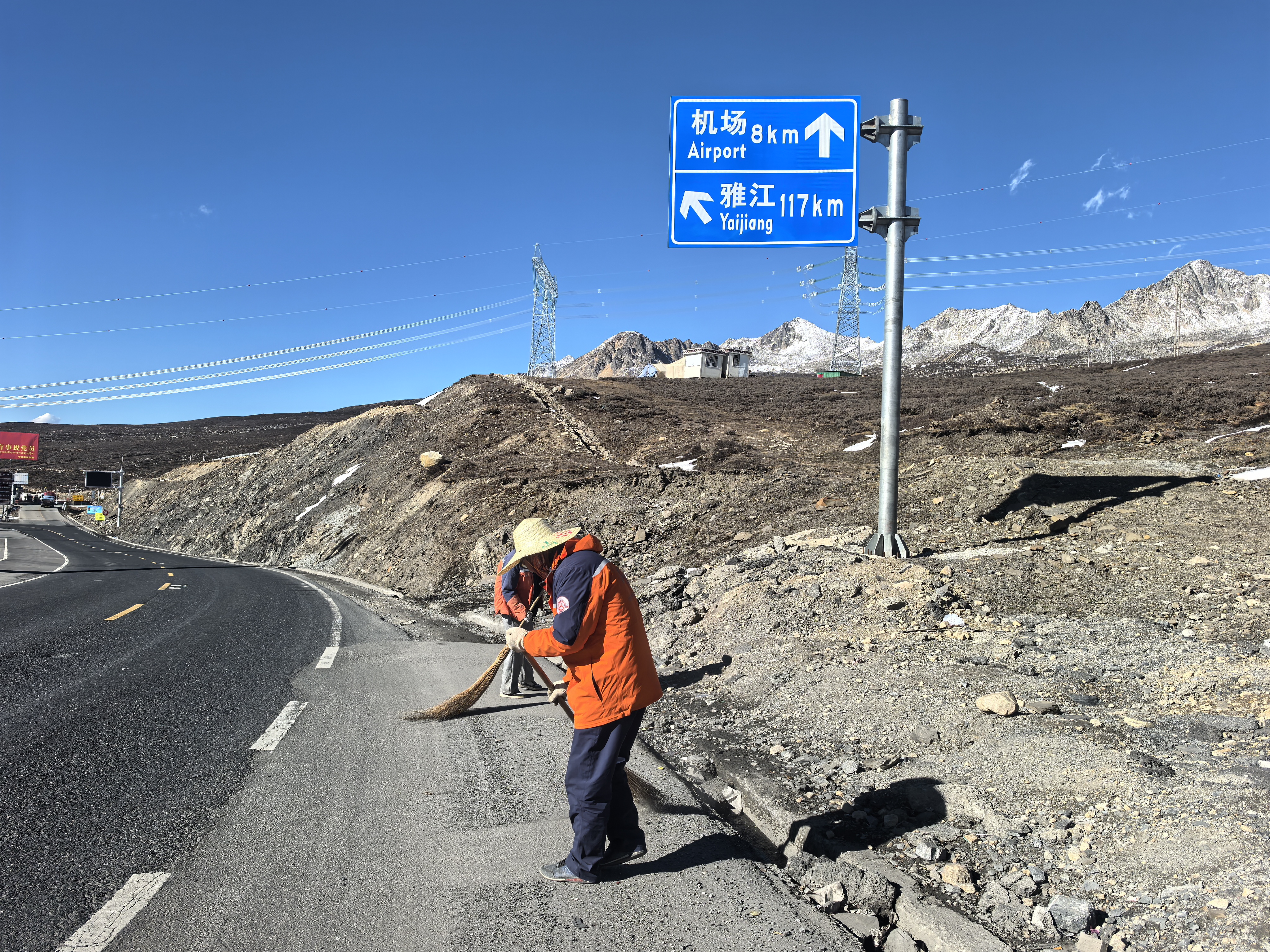 2024年8月份的一天,在距养护站不远处的路上有一辆车熄火了,堵住了过往车辆通行,一时之间,喇叭声四起。车主是一位女士,从云南来,带着父母和小孩准备去稻城游玩,听着周围车主的抱怨,车主无所适从,急得眼泪都快要掉下来了。