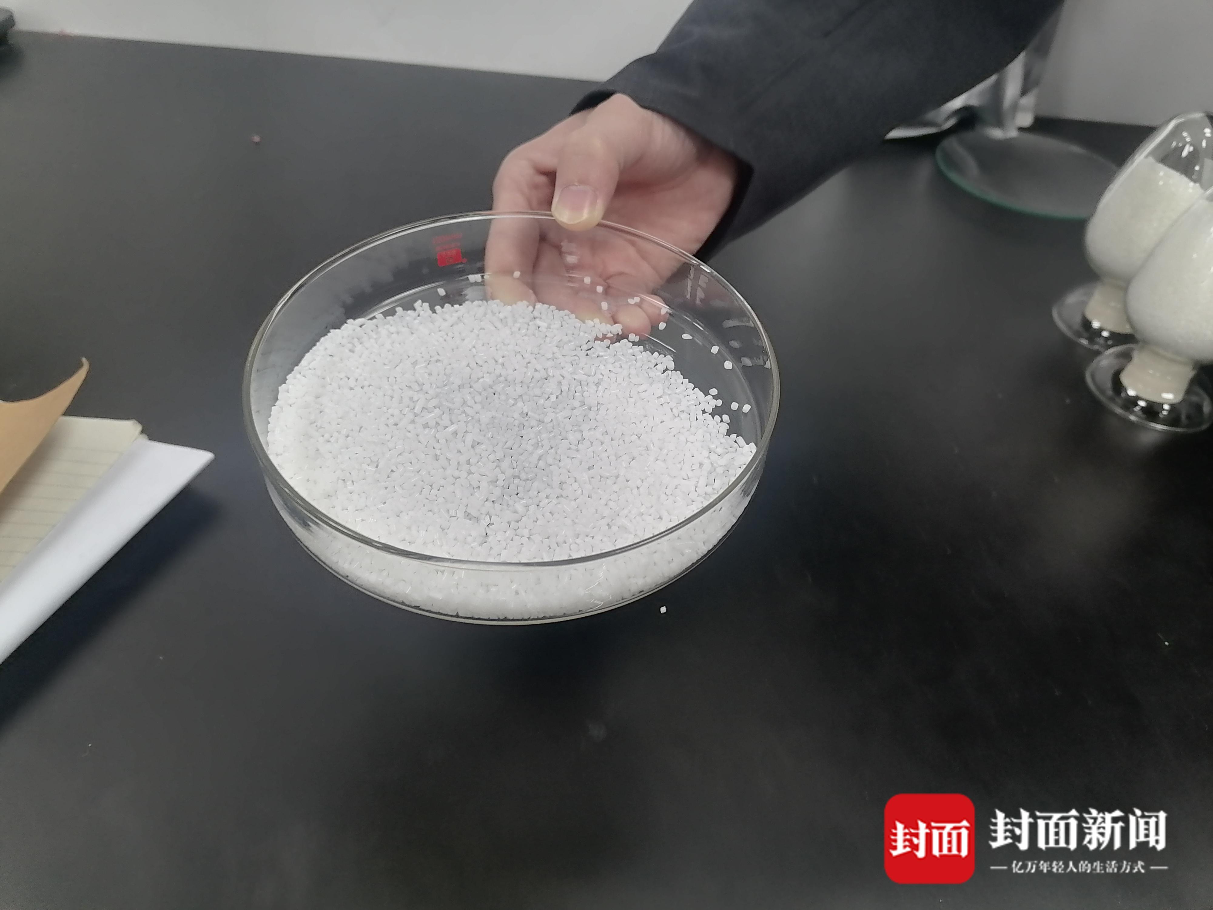 记者在四川大学化学学院看到,PPDO产品为乳白色颗粒,但是这种看起来不起眼的合成材料,却是制造医用手术缝合线的高价值材料。