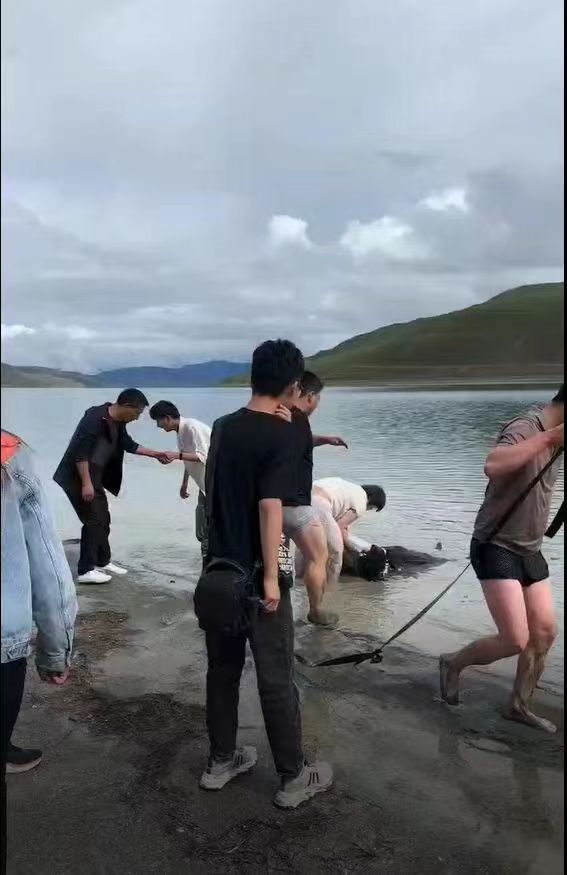 7月27日下午4时许,西藏羊卓雍措(又名羊湖)景区发生惊险一幕:一个年轻女孩即将被湖水没顶之际,几位男子靠着一条用皮带、围巾连接而成的“保险绳”,逐渐接近女子,奋力将其拉到岸上。