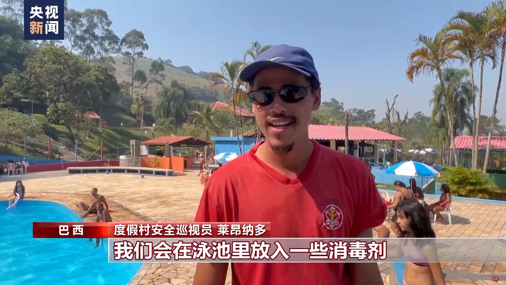 度假村安全巡视员 莱昂纳多:我们会在泳池里放入一些消毒剂,防止蚊虫出现,还会有人专门负责公园的清洁工作。