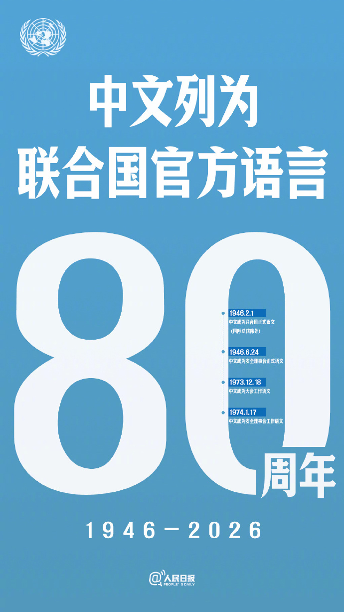 今天是谷雨,也是第17个联合国中文日。作为世界上最古老的语言之一,中文绵延古今、跨越山海,传承着“和而不同”“和谐共生”的东方智慧,见证了联合国80多年来承载的和平梦想。今年是中文列为联合国官方语言80周年,看中文在联合国的时间线,转发,纪念!