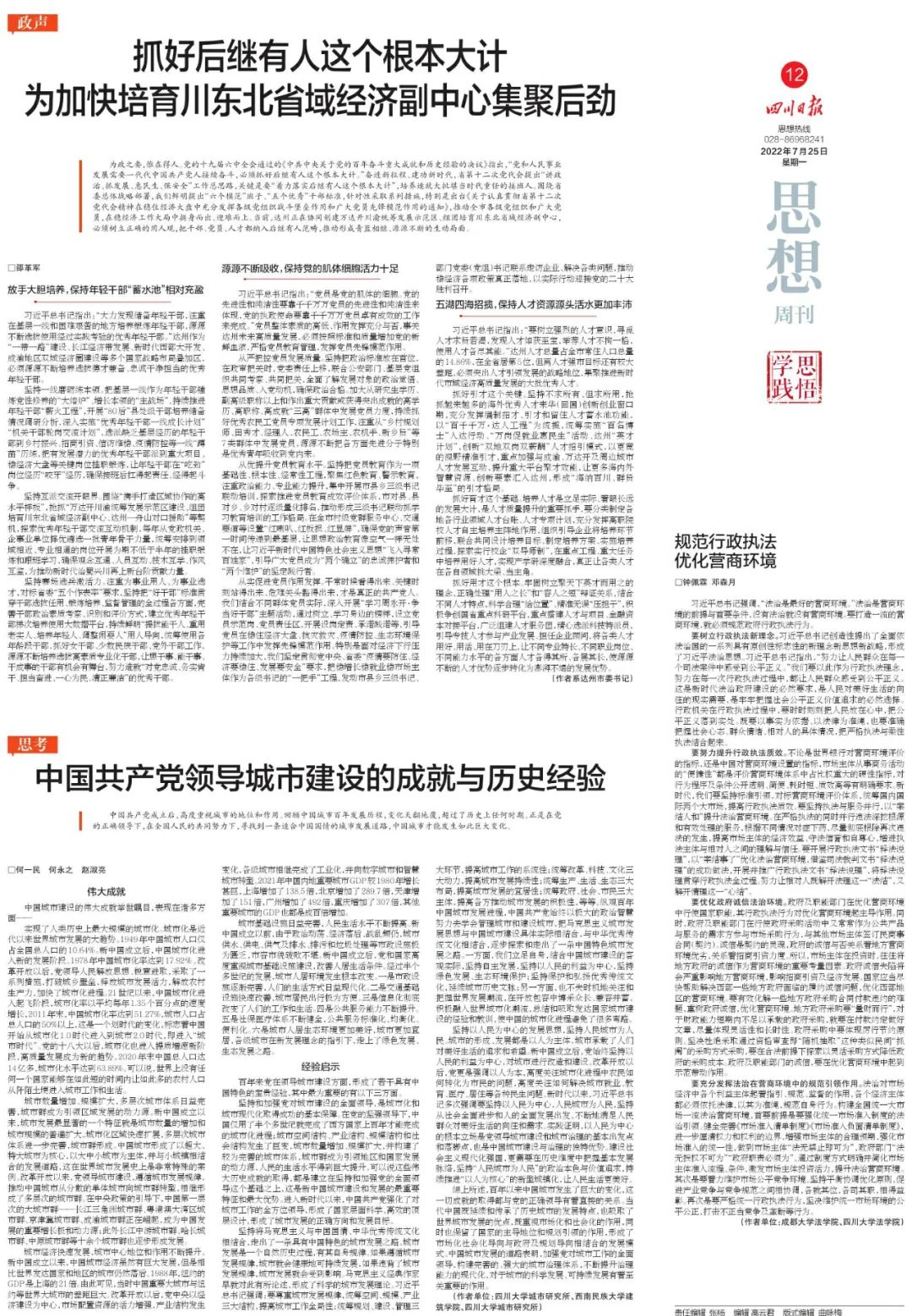7月25日出版的《四川日报》发表了达州市委书记邵革军的署名文章《抓好后继有人这个根本大计 为加快培育川东北省域经济副中心集聚后劲》。全文转载如下: