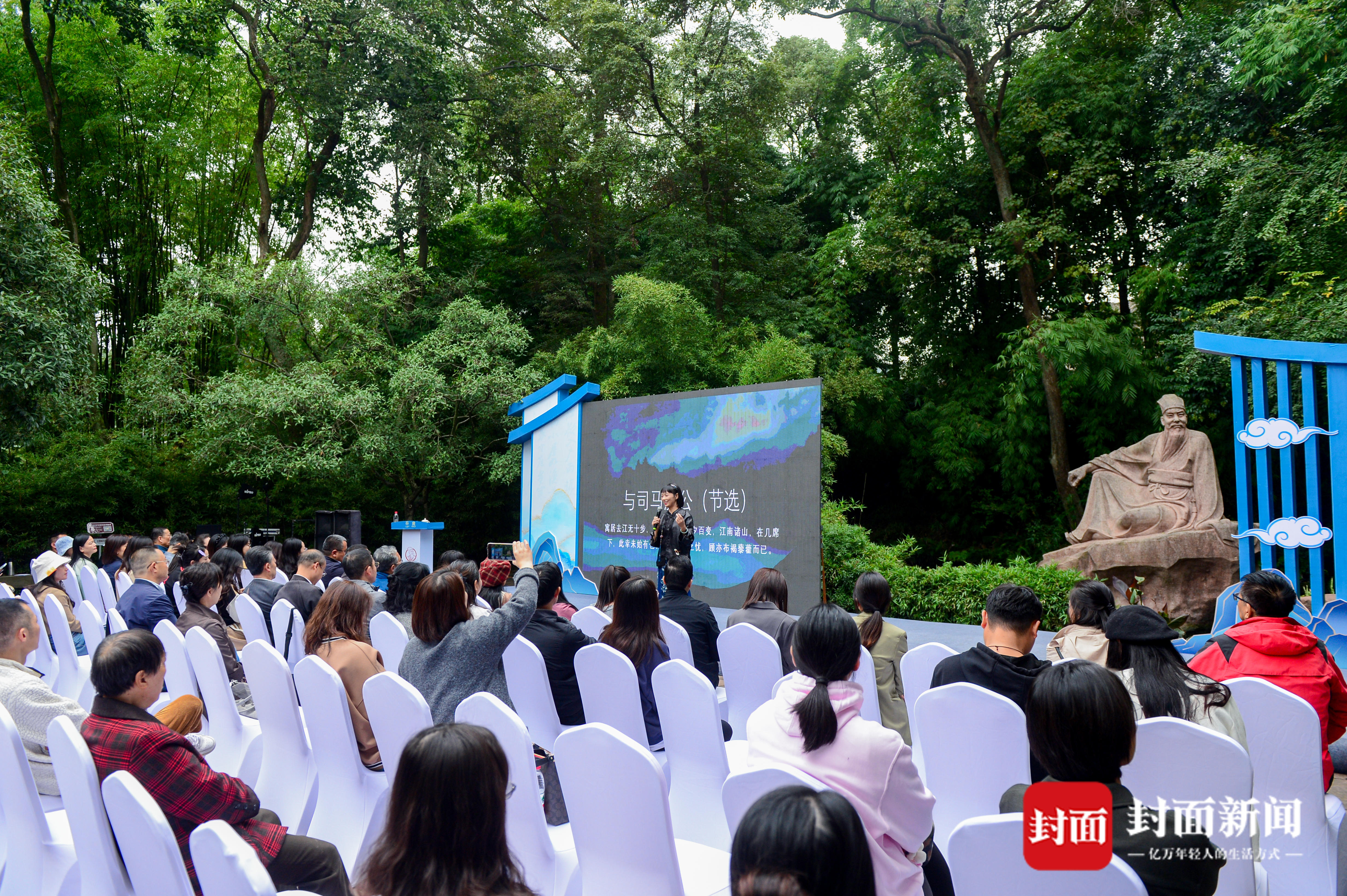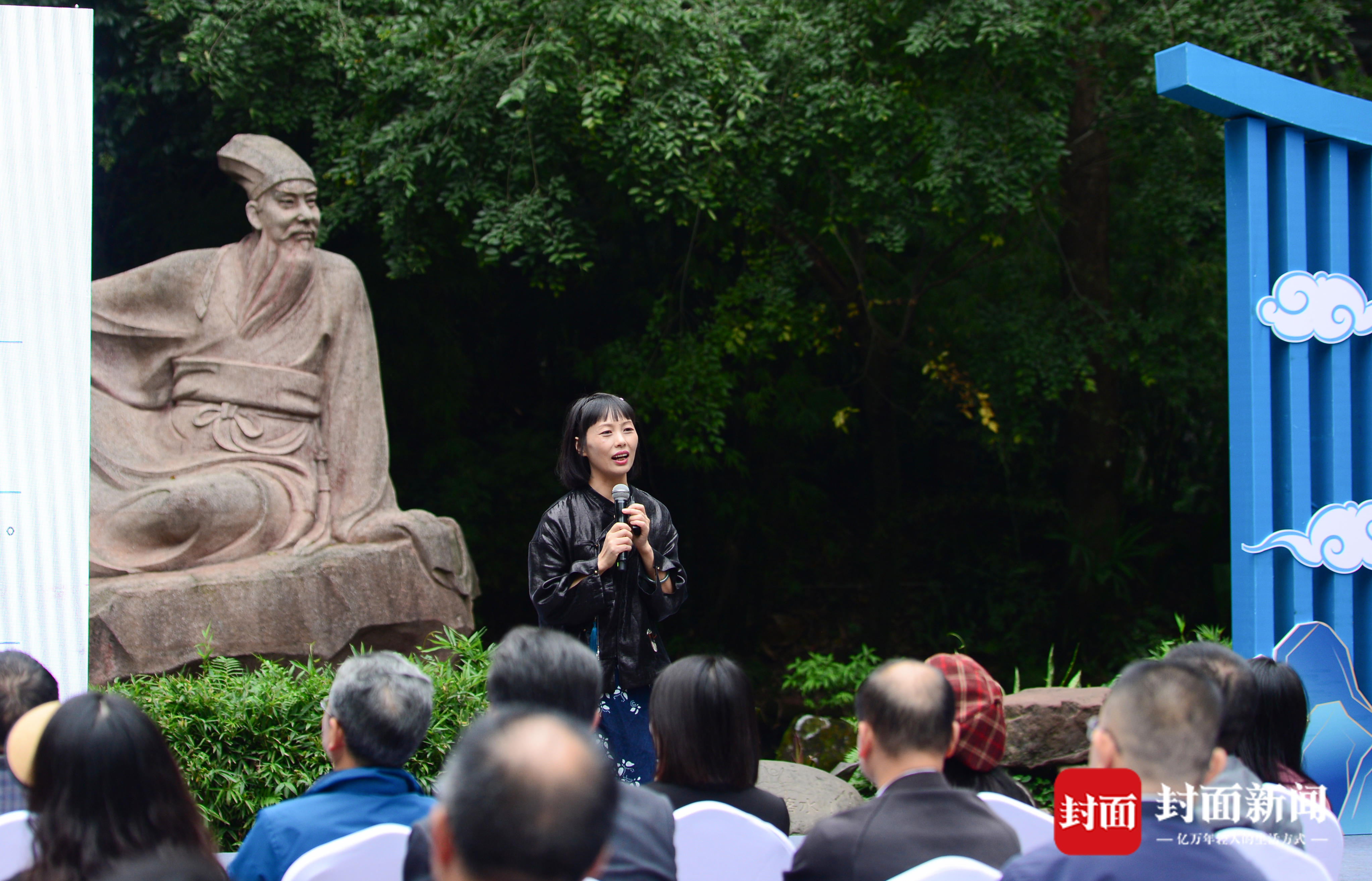 10月20日下午,“东坡大家讲”名家系列讲座迎来了第八讲,四川大学文学与新闻学院副教授伍晓蔓做客眉山三苏祠博物馆,以《苏子瞻三咏赤壁》为题,从心理学角度切入,带领现场观众重回元丰五年的大宋黄州,探索苏轼在这一年的心灵成长之旅。伍晓蔓声情并茂的分享方式赢得了在场观众阵阵掌声,她以苏轼创作于元丰五年的名篇为线索,带领大家细读“三咏赤壁”。在三苏祠的东坡盘陀像前不时诵读词赋,让本场讲座沉浸感和氛围感十足。