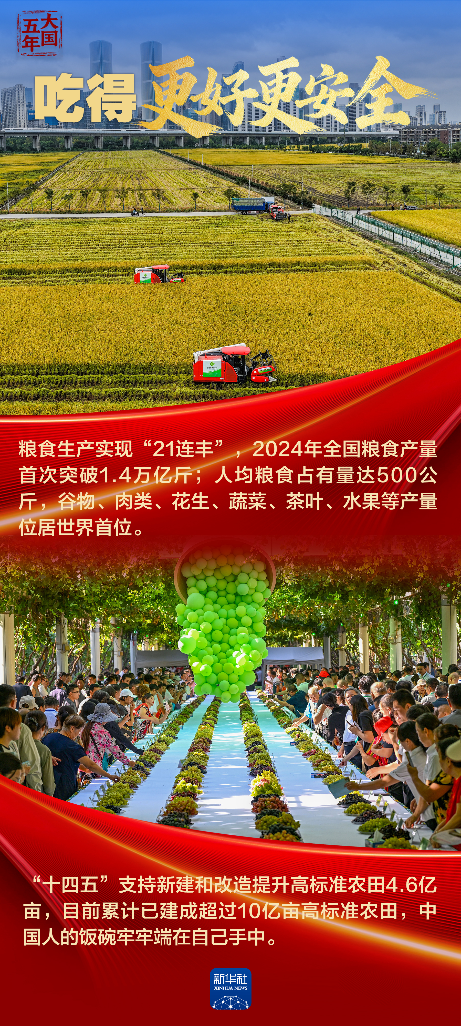 人民对美好生活的向往,就是我们的奋斗目标。“十四五”这五年,群众出行出游更加便捷、医疗养老更有保障、文化生活更为丰富,天更蓝、水更绿、环境更好……经济发展、社会进步、科技创新的成果,正在实打实地转化为群众的获得感、幸福感、安全感。