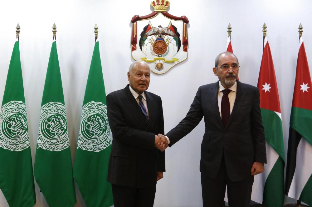 2月23日,约旦副首相兼外交与侨务大臣萨法迪(右)在安曼会见到访的阿拉伯国家联盟秘书长盖特,双方强调必须共同努力巩固加沙停火,并向加沙地带提供充足、持久的人道主义援助。新华社发(穆罕默德·阿布·古什摄)