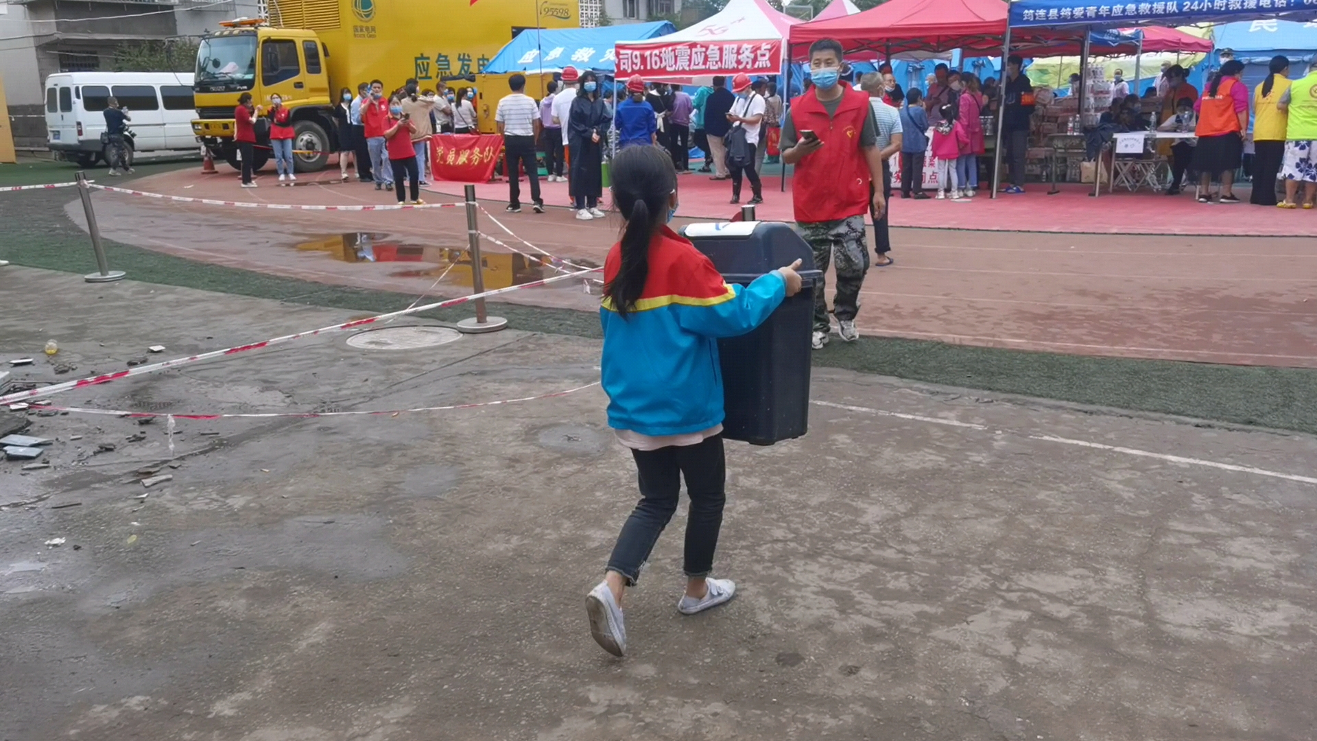 9月16日下午4点半,距离四川泸县6.0级地震发生12个小时后,位于福集镇泸县龙脑桥中心小学操场的临时安置点,各项安置工作已经步入正轨,武警官兵列队巡逻,社区工作人员统计人数,志愿者们则忙着准备晚饭。一群中小学生,他们虽然年龄不大,个子不高,却也不甘示弱,积极争取到不同志愿岗位,贡献自己的一份力量。