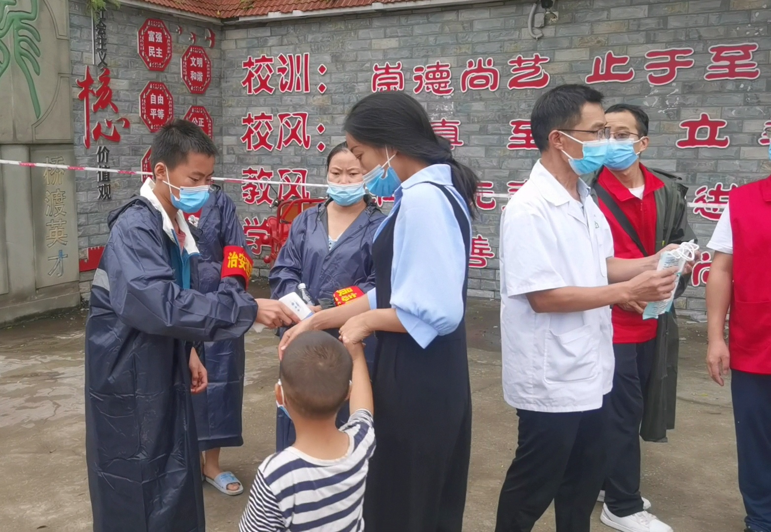 来自龙脑桥中学的初一学生岳志轩穿着黑色雨衣,站在安置点大门口,“拦住”每一个进门的人,测量体温。这个学习成绩一般,还没当过班干部的小伙子,难得主动做件有意义的事,脸上洋溢着骄傲的神情。上午在此岗位上测量体温的是岳志轩的表叔和姐姐,下午成了他和妈妈,一家好几个都在当志愿者。