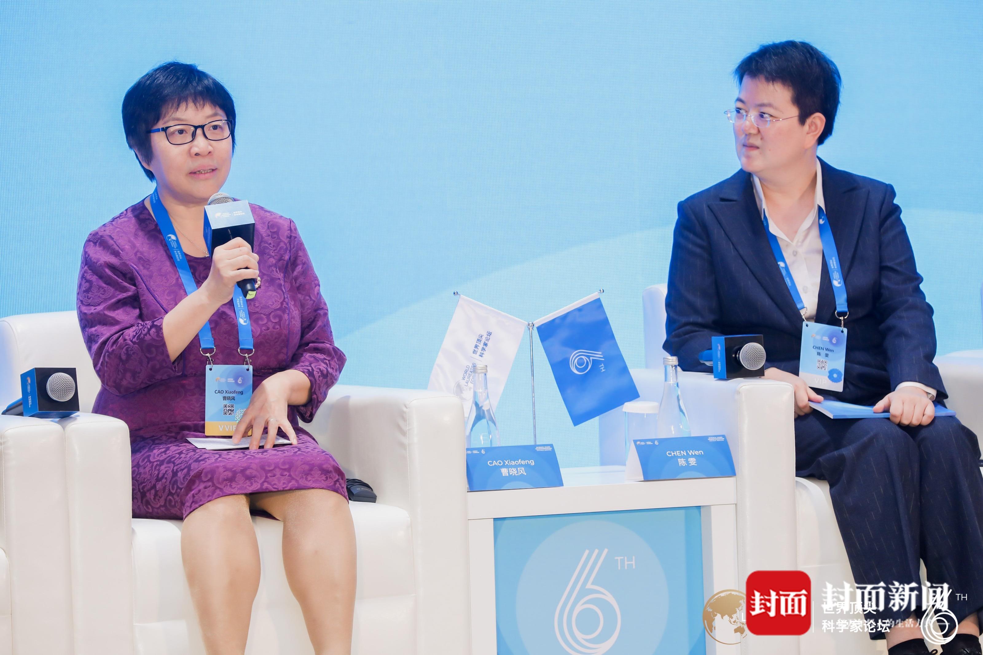 曹晓风院士(左)在世界科学家“她”论坛上发表观点
