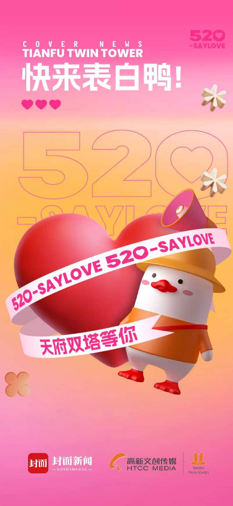 封面新闻联合成都高新文创传媒有限公司将推出“520saylove 快来表白鸭”大型活动,