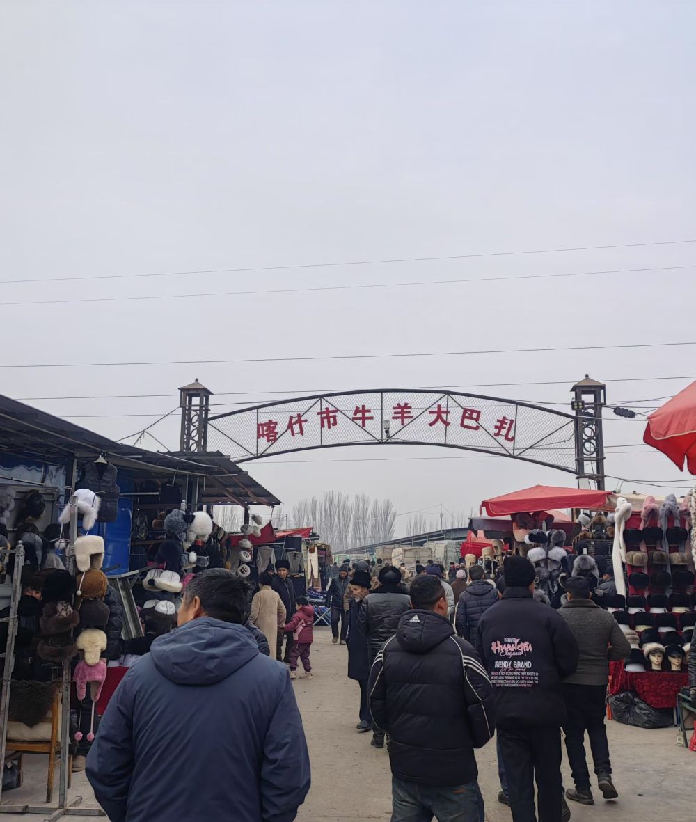 喀什市牛羊大巴扎,是南疆知名度较高的巴扎之一。每逢周日,十里八乡的农牧民都会带着自家的农副产品、手工艺品、特色美食和牲畜前来赶集。这里随处可见用手机拍照和录制视频的游客,有的一边逛巴扎,一边给直播间的网友讲述巴扎上的趣事。