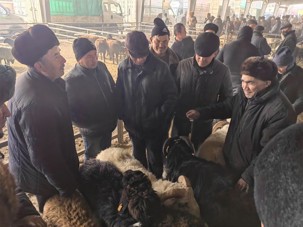 1月5日,在新疆喀什市牛羊大巴扎,买卖双方正在讨价还价。新华社记者蔡国栋 摄