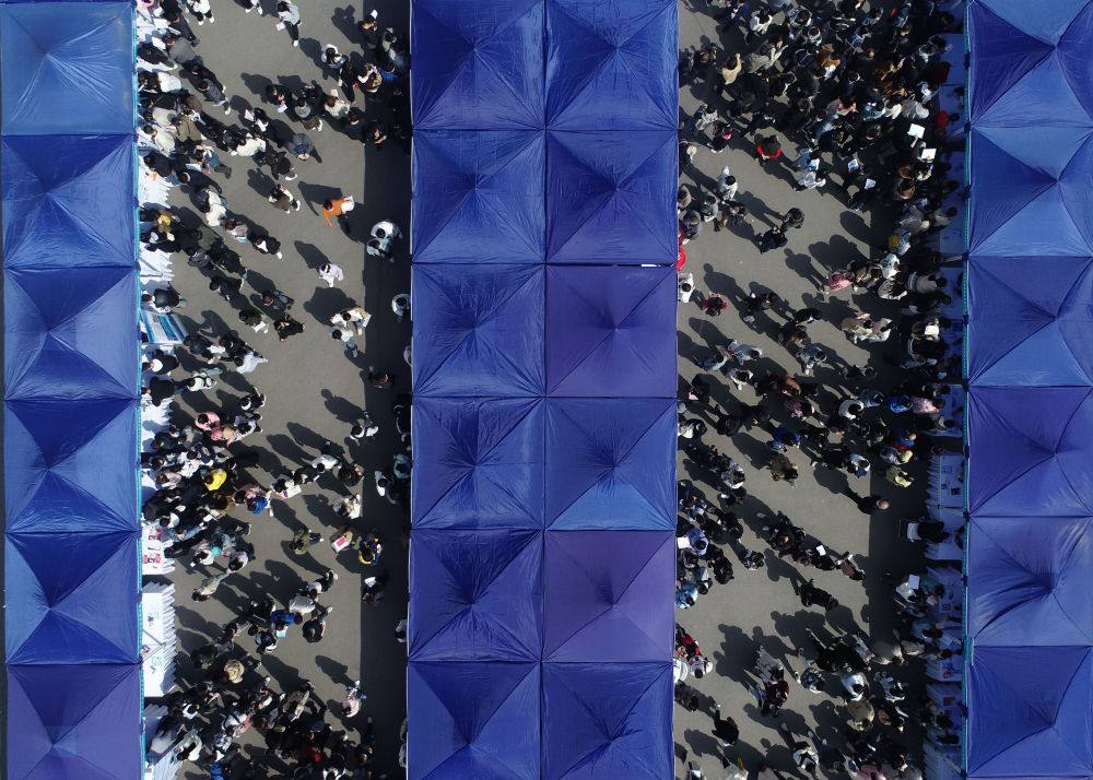 2023年3月25日,求职者参加2023年西安市春季大型人才招聘会(无人机照片)。新华社发(邹竞一 摄)