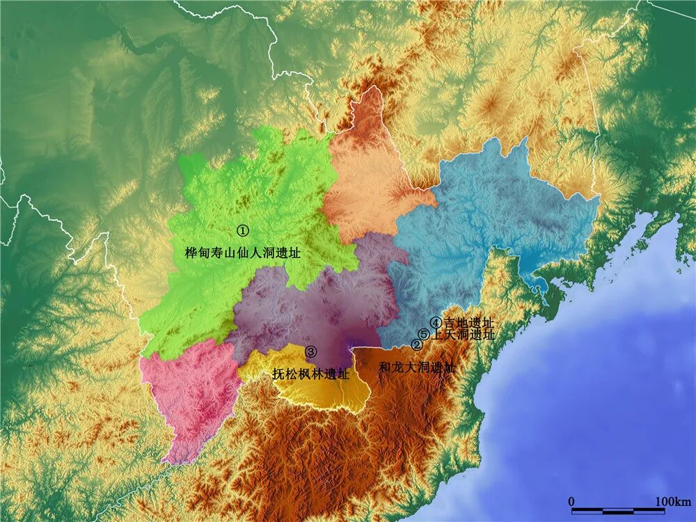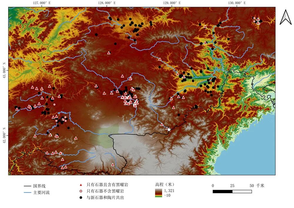 吉林东部长白山旧石器时代遗址群分布示意图