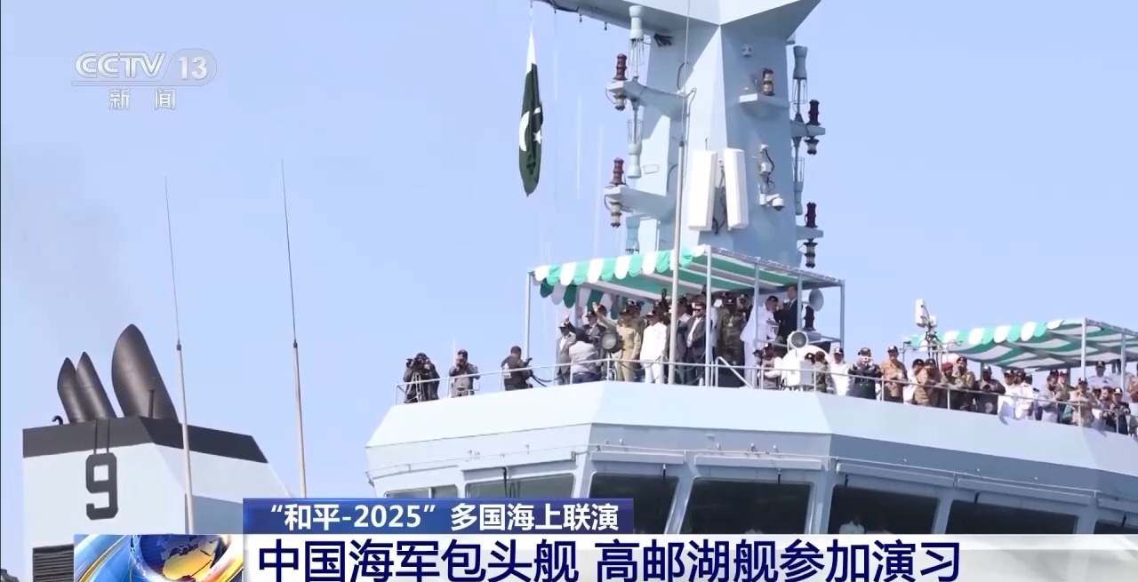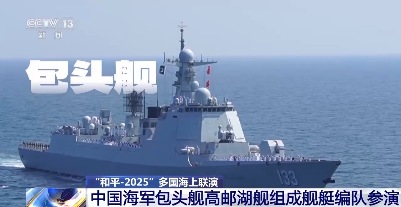 “和平-2025”多国海上联合演习中,海军包头舰、高邮湖舰作为中国舰艇编队应邀参加。