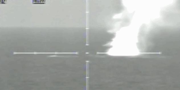 包头舰:在航行过程中对靶标进行主炮射击