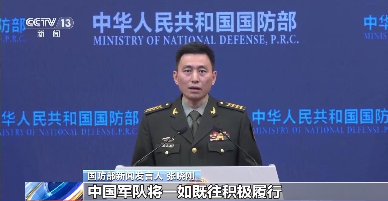 国防部新闻发言人 张晓刚:中国军队将一如既往积极履行国际责任和义务,以实际行动为维护世界和平稳定贡献力量。