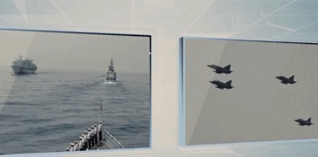 中国海军包头舰、高邮湖舰组成舰艇编队参演