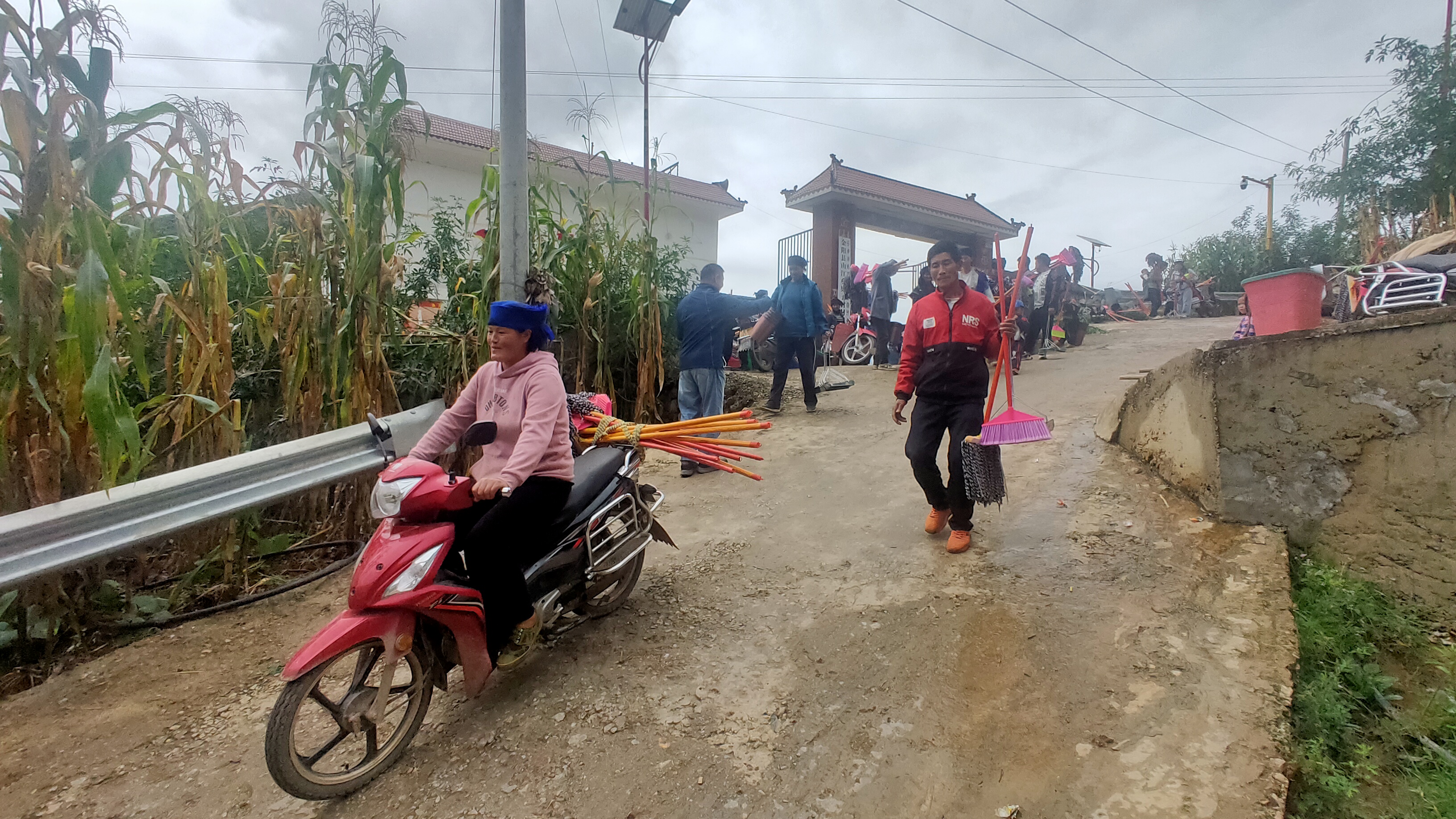 当地村民领取“四件套”后回家