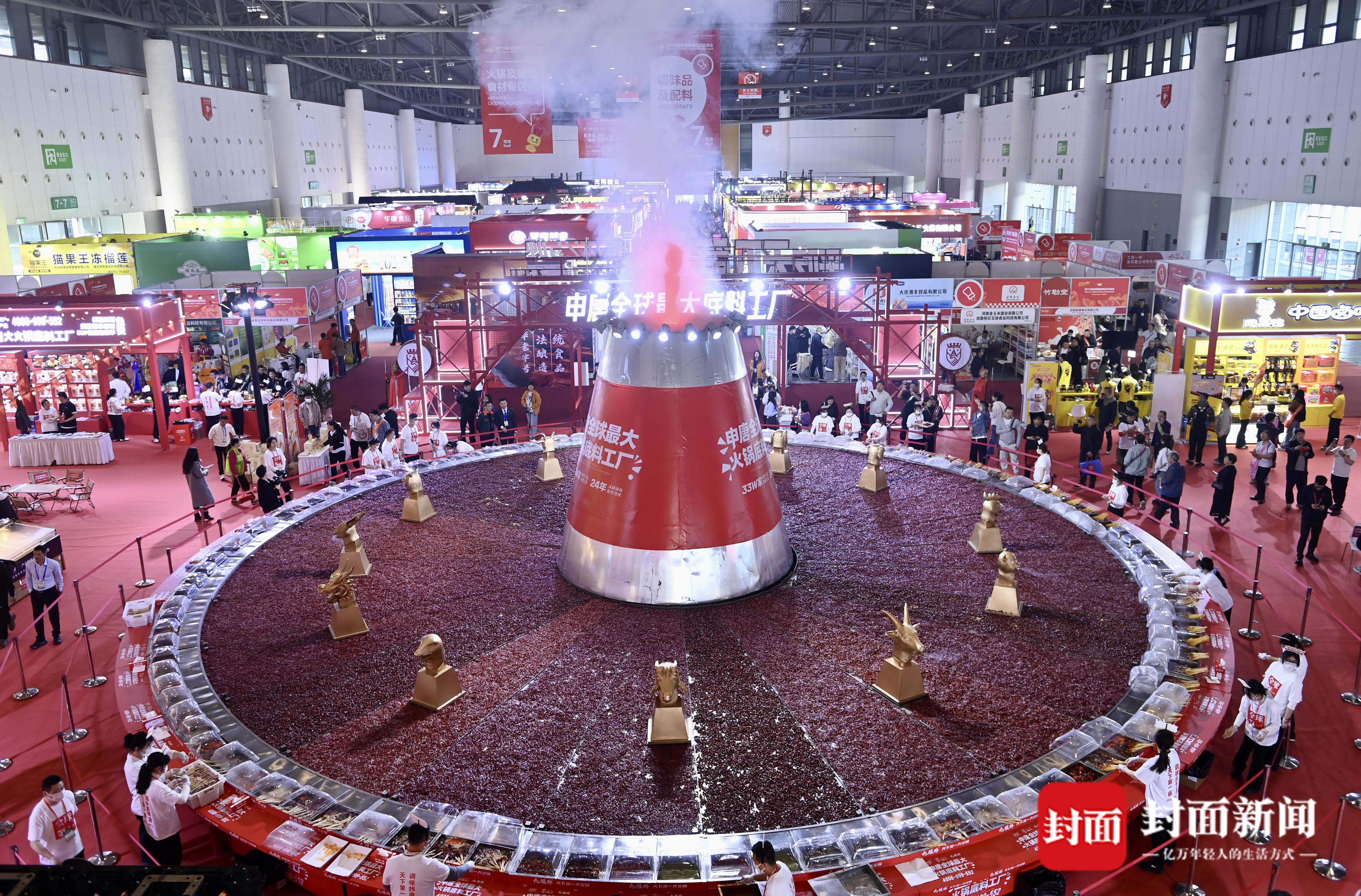 3月26日,第114届全国糖酒商品交易会在成都开幕,西博城展馆重达25吨的大火锅开煮。