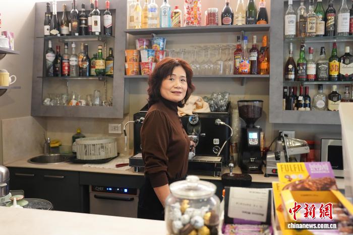 当地时间2月13日,意大利米兰,华人老板陈晓丹在帕尔马酒店前台。 中新社 记者 单璐 摄