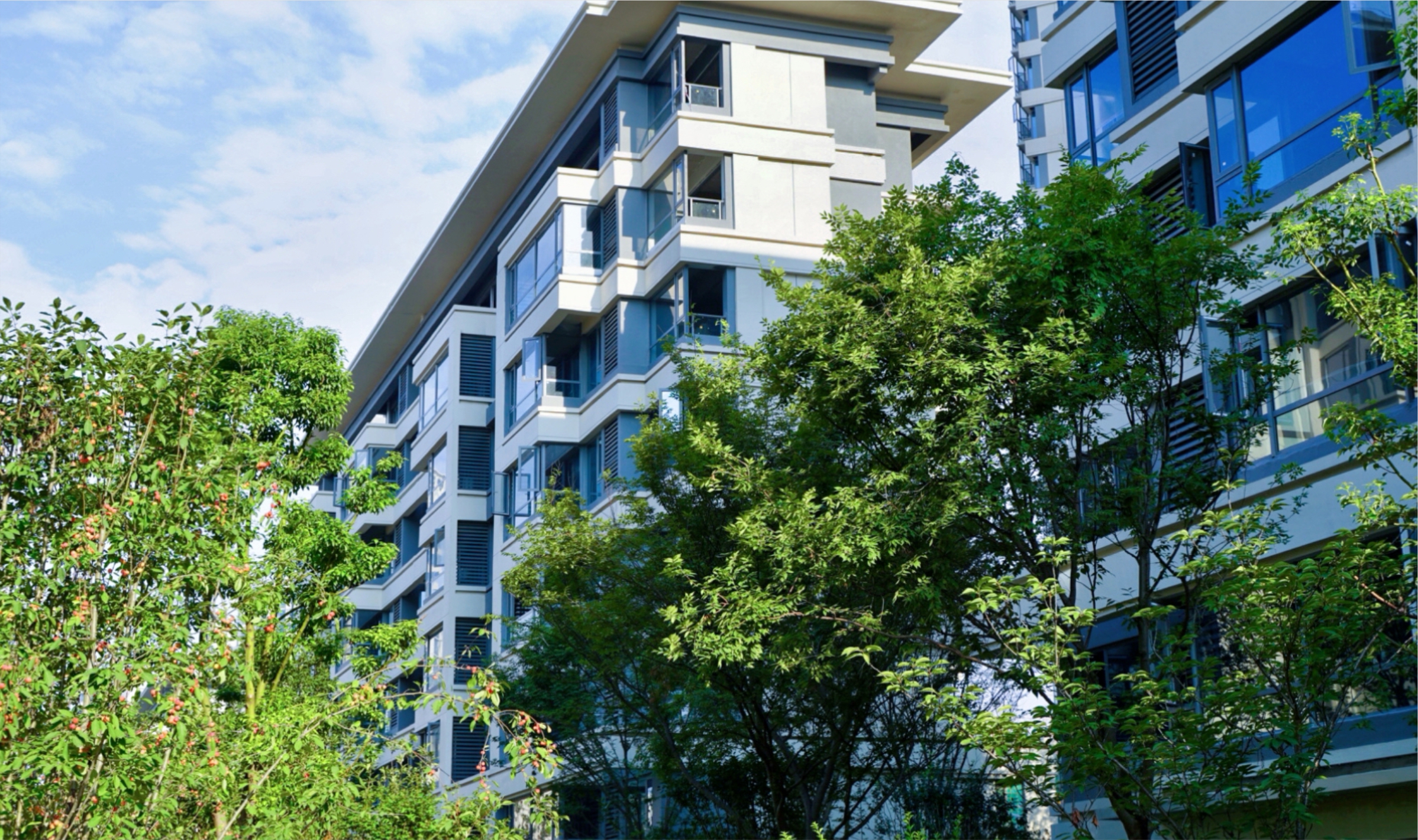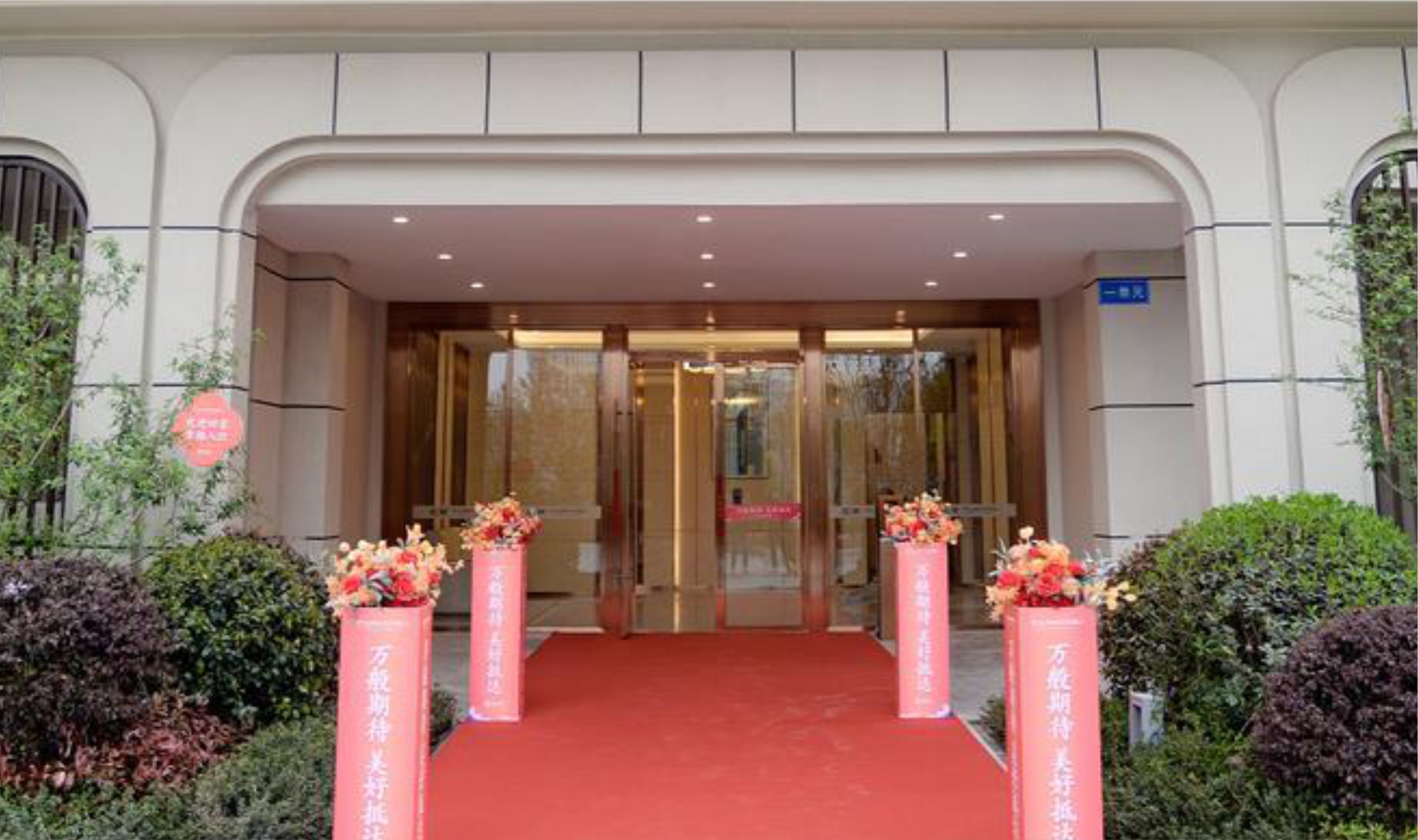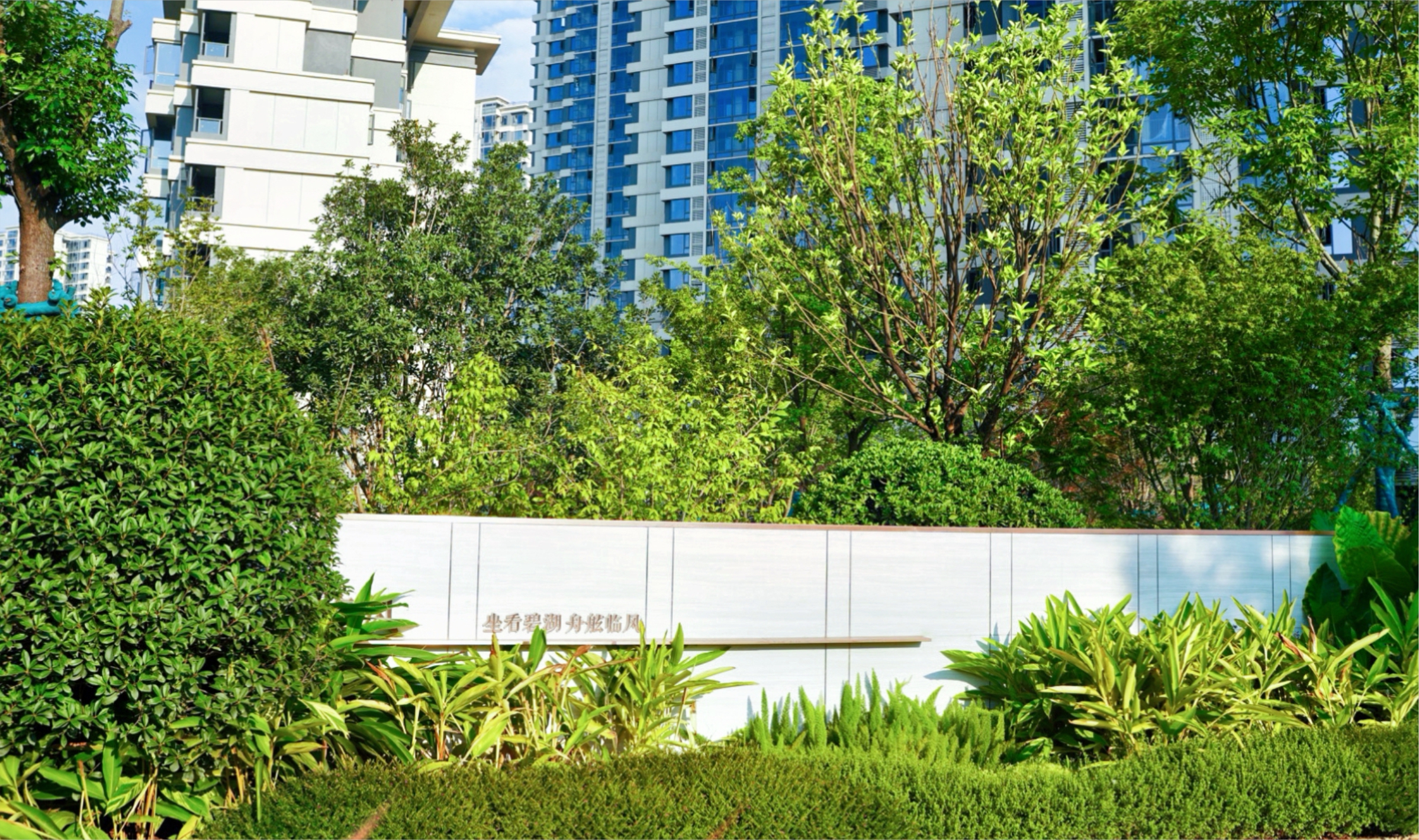 穿过高约10米的恢弘社区门庭,五重景观园林便映入眼帘,每一株景观植被依据四时变化精心搭配,造型丰富,层次分明,引人入胜。