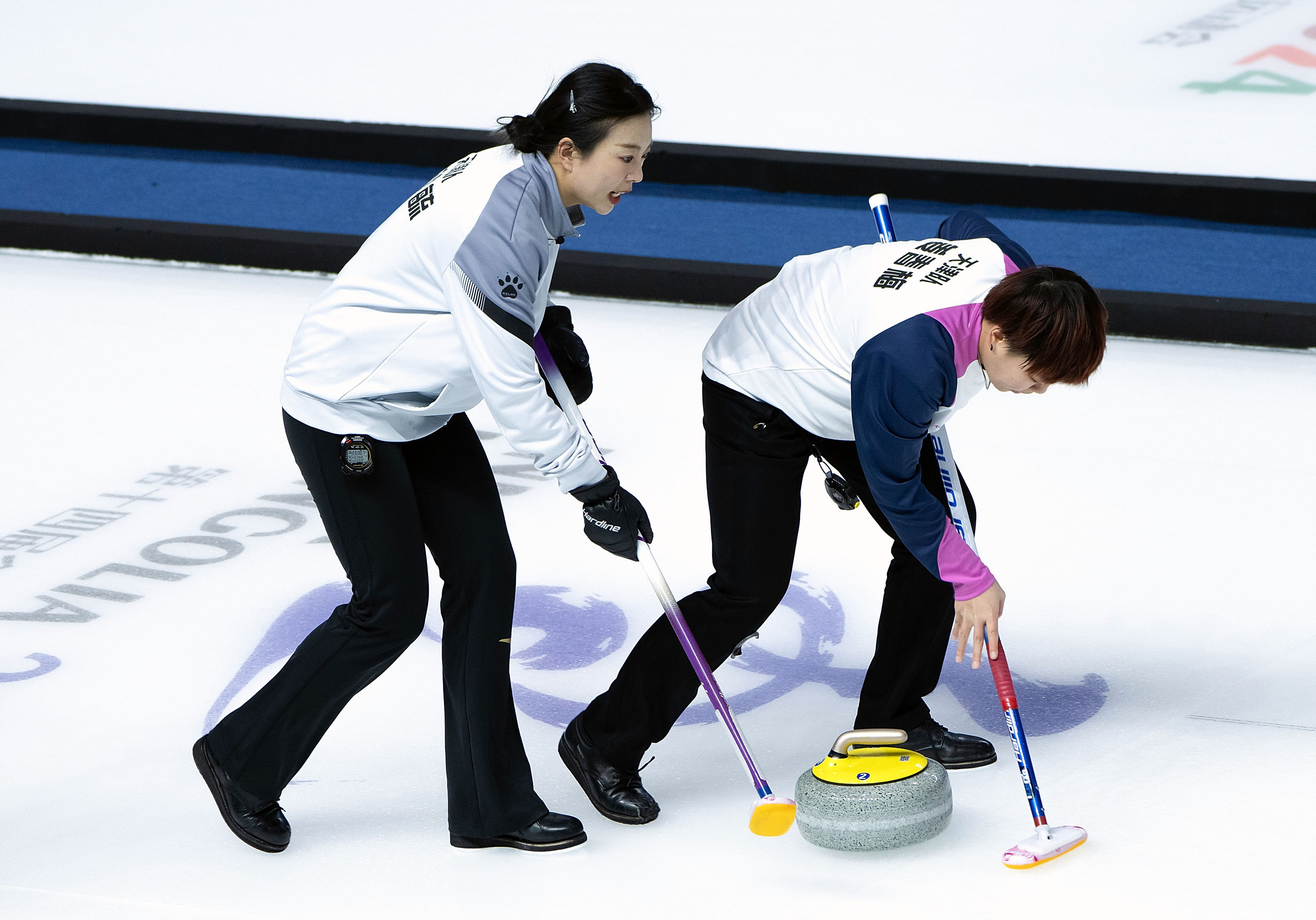 2月27日,天津队选手苏亭毓(左)、姜春梅在比赛中。新华社记者 陈欣波 摄