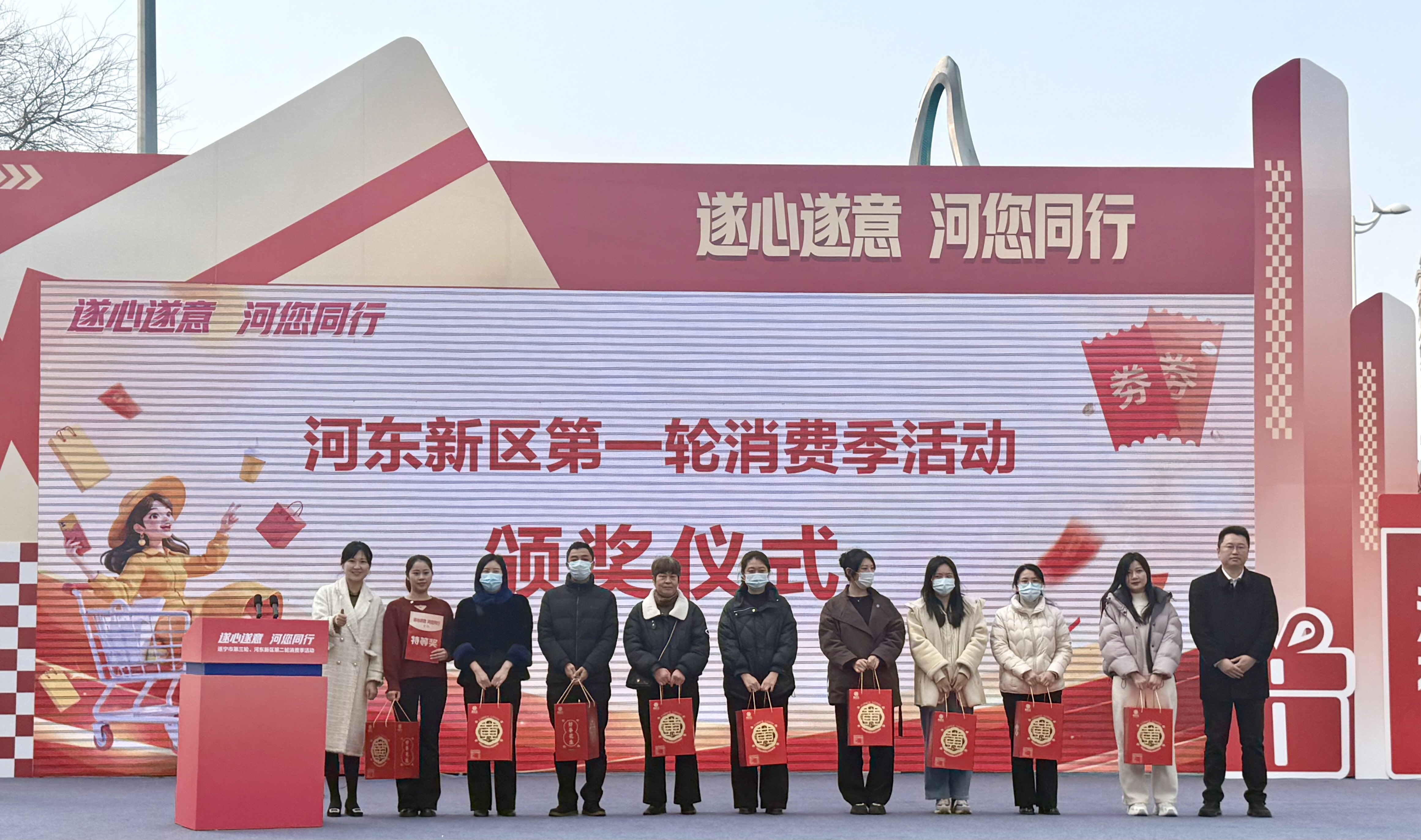 1月13日,“遂心遂意·河您同行”四川省遂宁市第三轮、遂宁市河东新区第二轮消费季启动仪式暨开票抽奖颁奖仪式,在遂宁万达广场开启。封面新闻记者从现场获悉,遂宁市消费季首轮10万元消费券特等奖已兑现;遂宁市河东新区第一轮消费季,特等奖价值20余万的公寓中奖人正在办理购房手续。