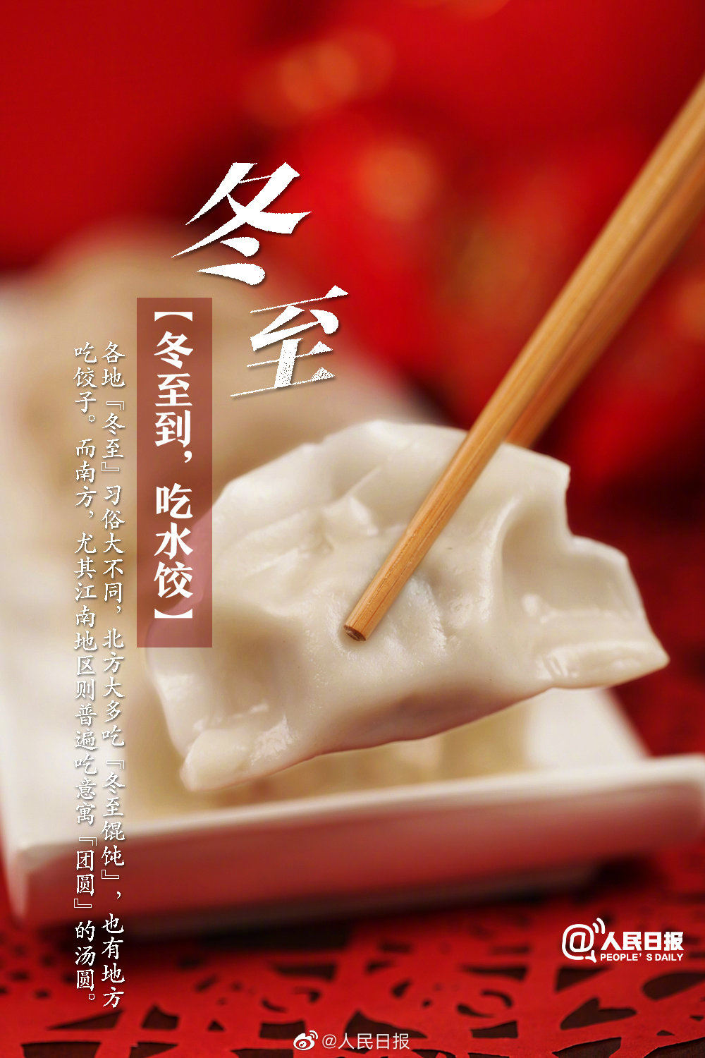 ①今天23时59分,迎来“冬至”节气;②这天太阳几乎直射南回归线,北半球阳光最少,白天最短;③自“冬至”开始,我国开始进入“数九寒天”,即人们常说的“进九”;④吃啥才配得上冬至的仪式感?北方大多吃馄饨、饺子,而南方尤其江南地区则吃汤圆。冬至到来,你准备吃点啥?
