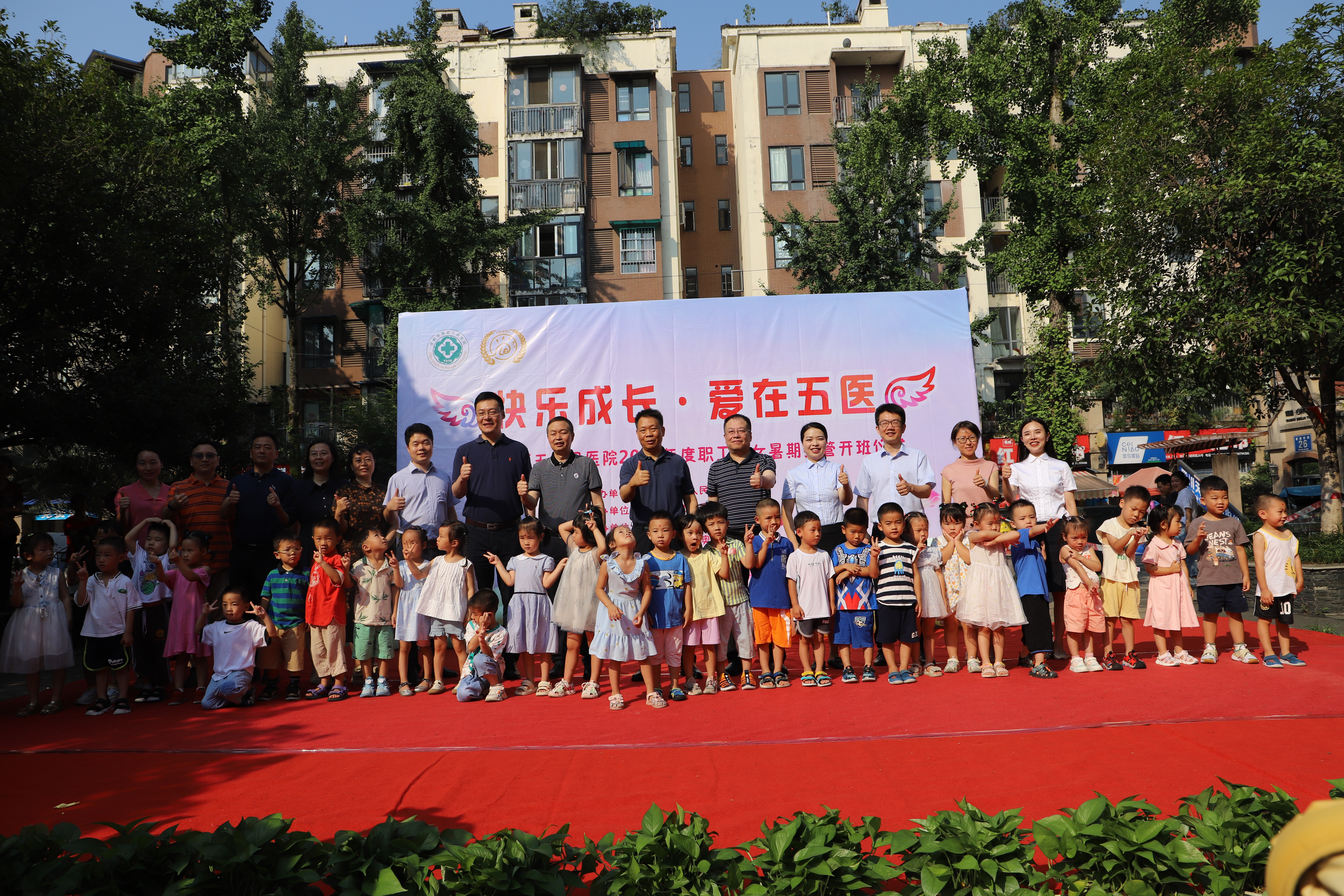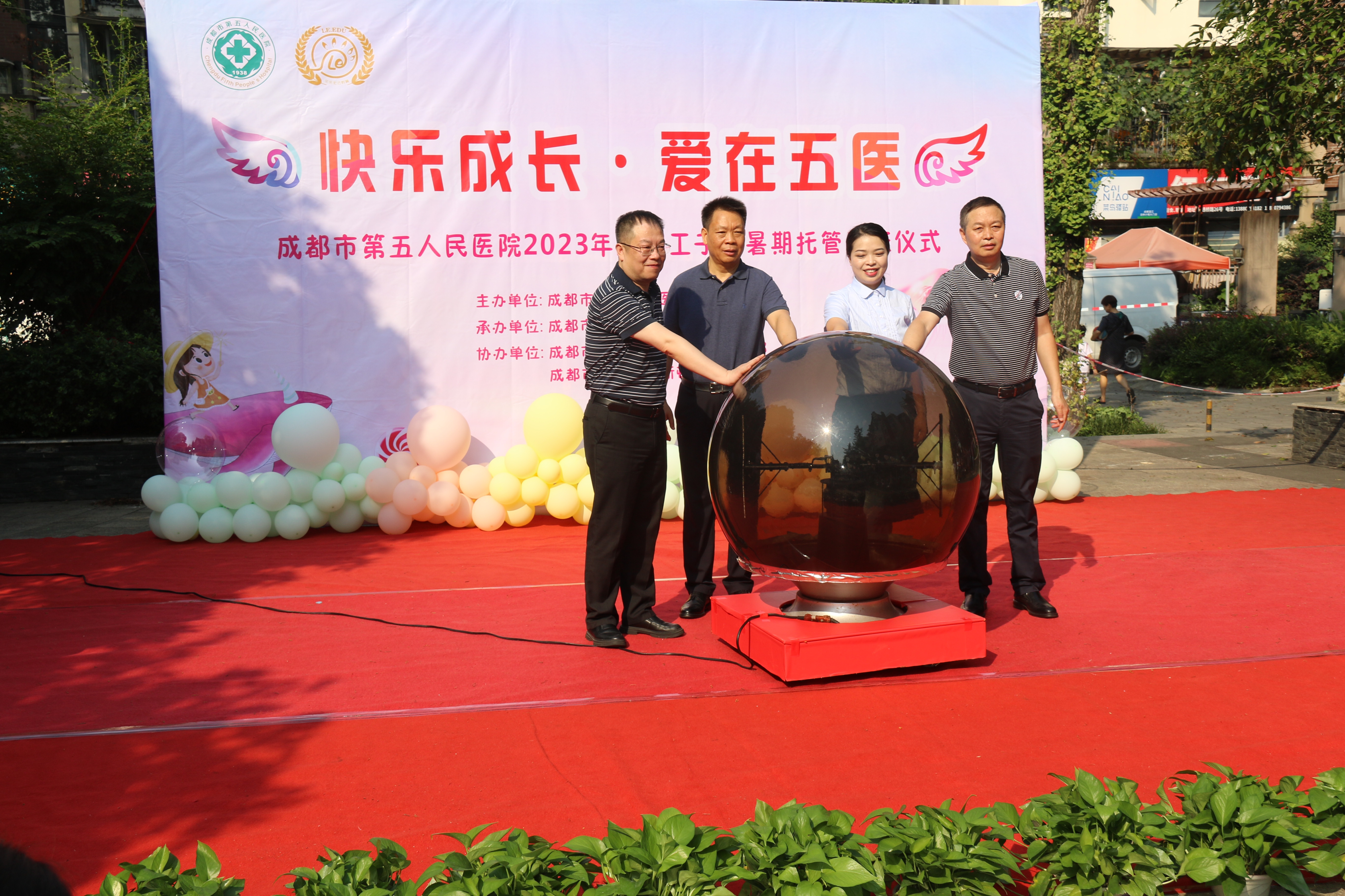 7月18日,在距离成都市第五人民医院直线距离700米的乐乐幼儿园,彩球飘扬、音乐声起。主题为“快乐成长 爱在五医”的成都市第五人民医院2023年暑期托管班开班仪式在这里举行。