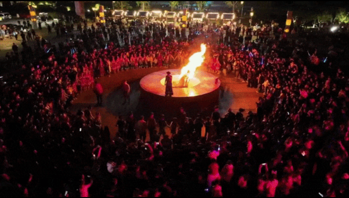 游客在巴山大峡谷观看巴人舞。(图据达州文旅)