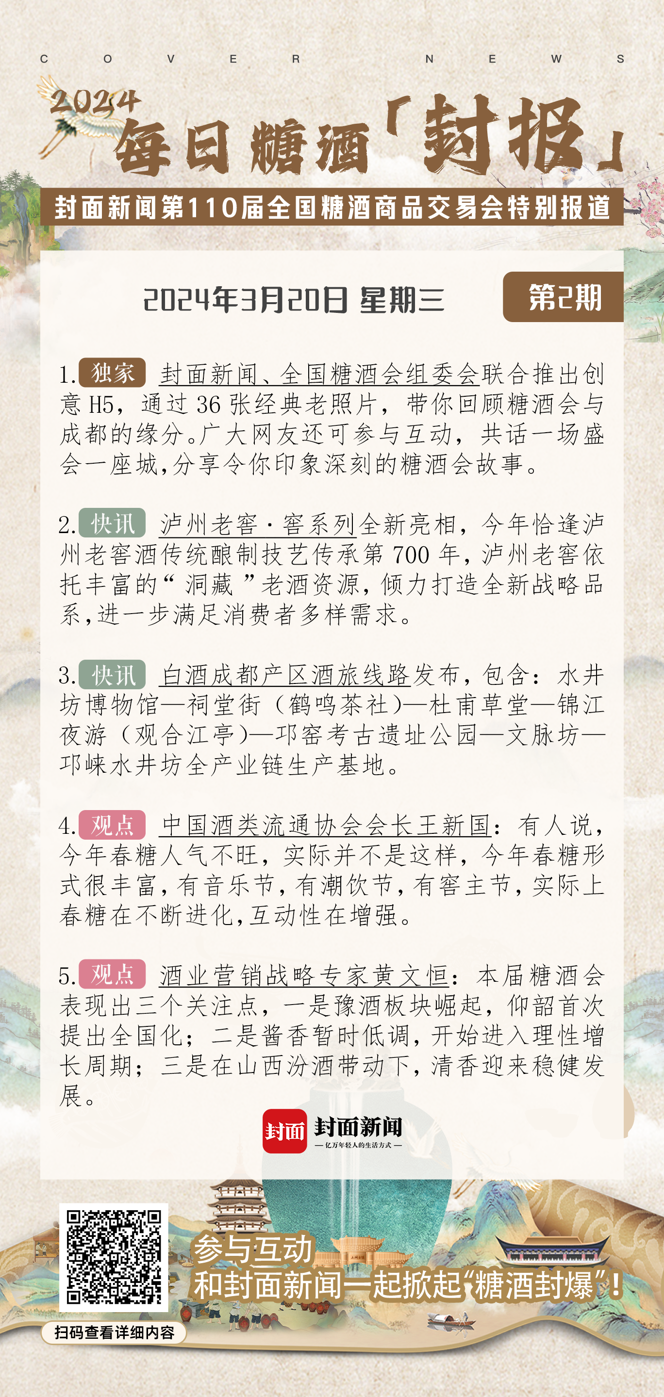 糖酒封报丨第2期:H5回顾糖酒会与成都之缘 白酒成都产区酒旅线路发布 封面区块链 该文章已上链 > 封面新闻 2024-03-26 11:22 70116 评论 11 七中雅君 2024-03-27 发表于四川 H5回顾做得真好,仿佛身临其境。 小丸子1 2024-03-27 发表于四川 旅游新选择,酒乡之旅听起来超棒! 额滴神呢 2024-03-27 发表于四川 文化与美酒的碰撞,成都你真行! 查看更多