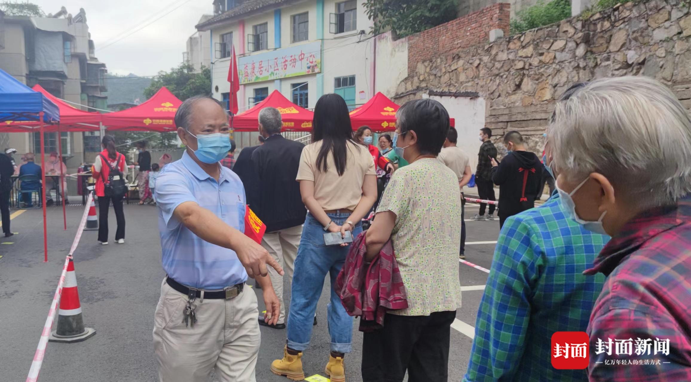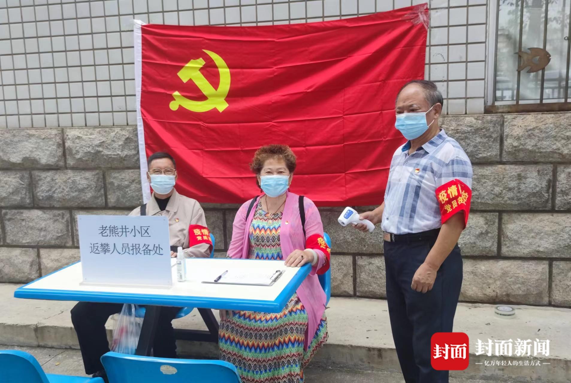 悬挂党旗、佩戴红袖标,9月4日8:00,东区老熊井小区邻里小组长黄之金早早来到了小区居民活动室,从活动室里搬出桌椅,快速布置好了小区疫情防控点,开始了新的一天的防疫工作。