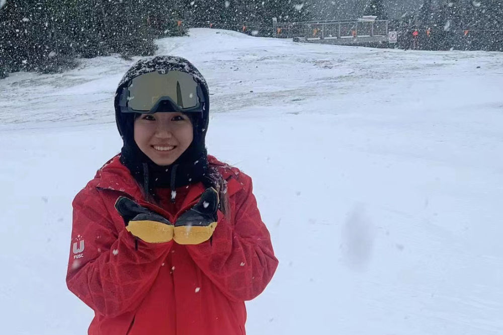 1月18日,常雨童在第31届世界大学生冬季运动会期间留影