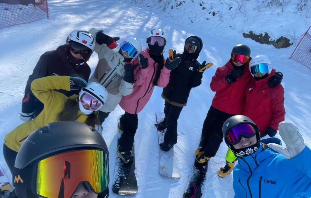 滑雪队都是非常热爱滑雪的一帮人,都很开朗、很好相处,也很乐于带着其他人一起玩儿。队里的学长学姐们社交能力非常好,和各个高校的“雪友”常常切磋,提高得超级快,也带着我一起提高。
