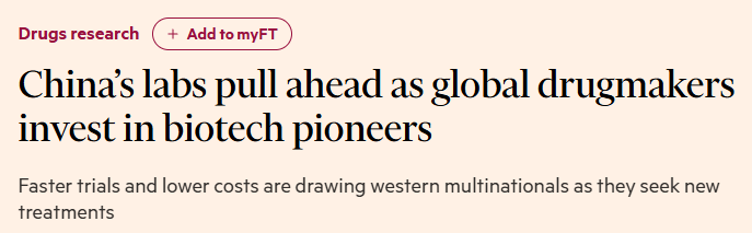 文章指出,近年来,中国已成为药物研发中心,尤其是早期候选药物的研发中心。更快的研发速度使中国企业能够比西方竞争对手更早地获得概念验证。